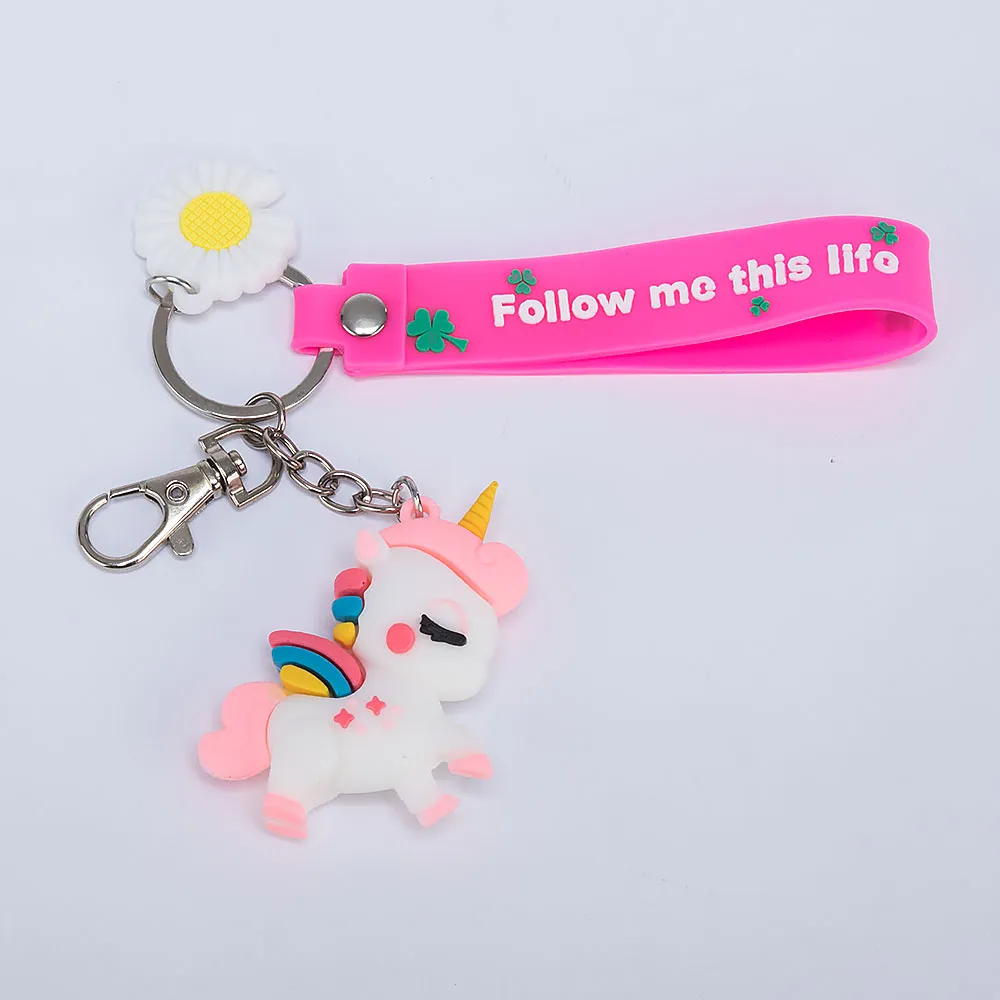 Брелок из металла, c силиконовой фигуркой единорога и яркой петлей. Модель с кольцом и карабином для крепления.