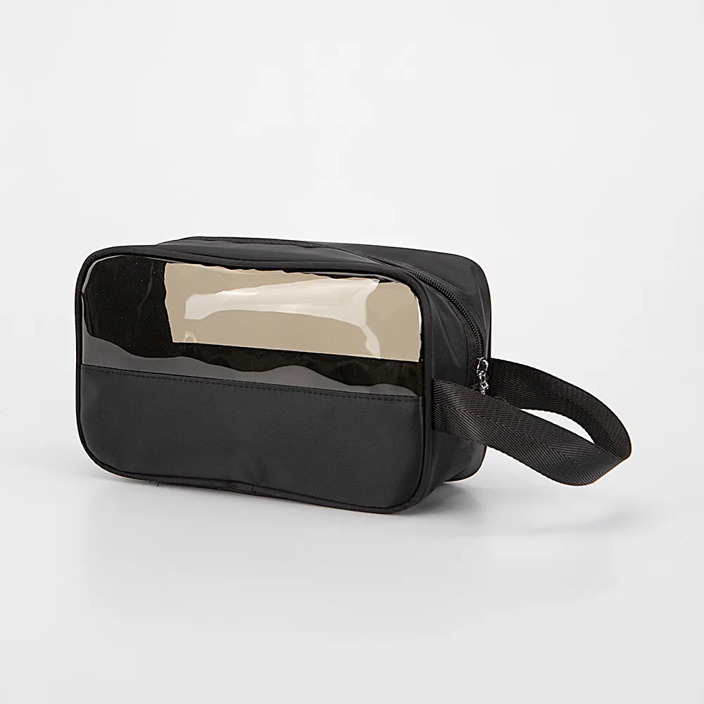 Косметичка от торговой марки Passo Avanti из текстильного материала и пластика черного цвета. Отделение на молнии. Сбоку имеется ручка-переноска.
