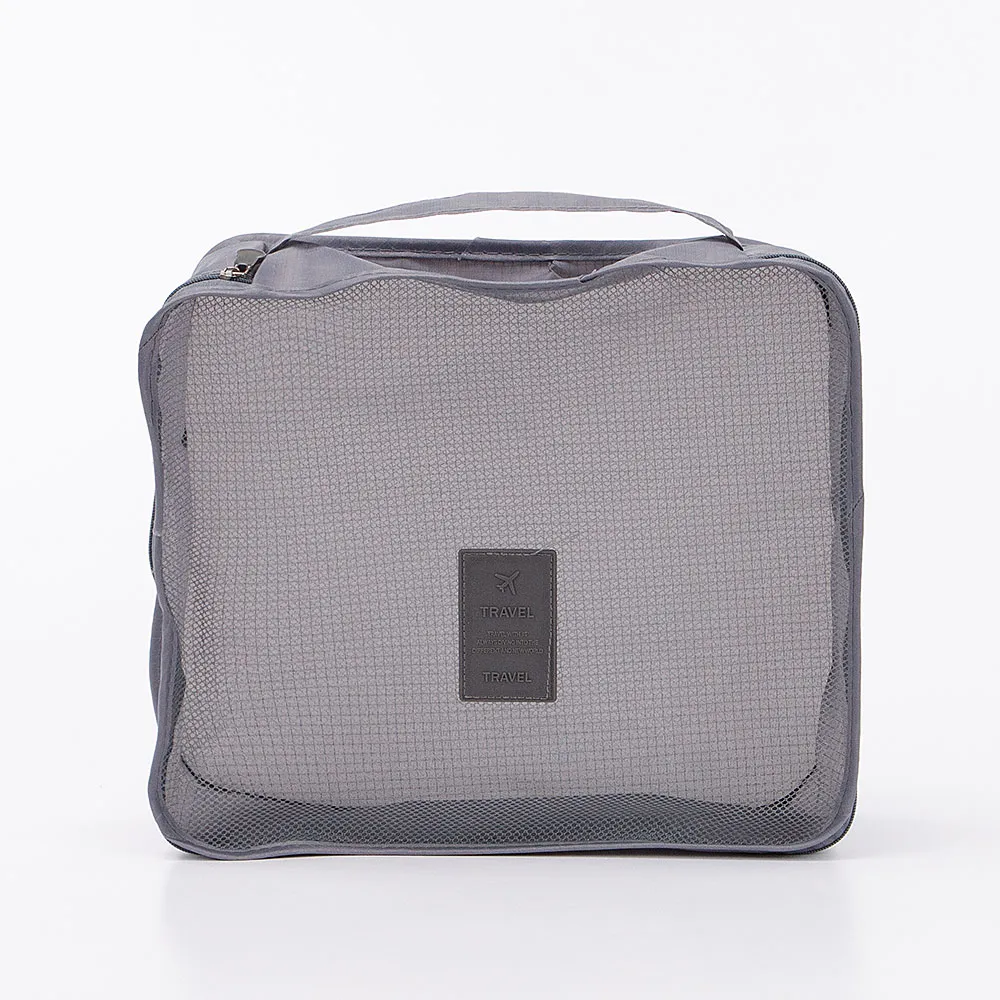 Набор дорожных косметичек из текстильного материала серого цвета. Набор состоит из шести косметичек разного размера, включая три плоские модели laundry pouch для хранения вещей. Модель с одной ручкой. Отделение на молнии. Лицевая стенка сетчатая. Набор обеспечит бережное и организованное хранение нужных вещей; аксессуар удобно использовать как дома, так и в поездках.