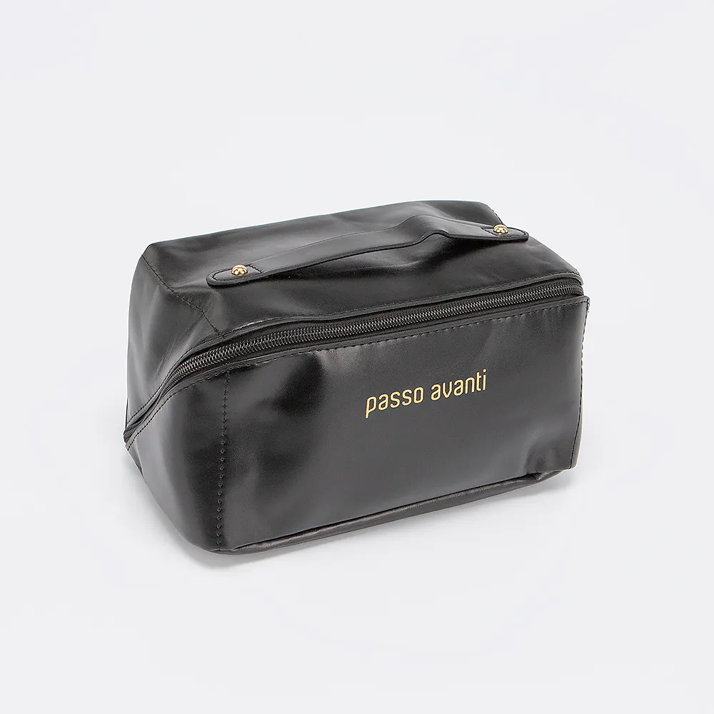 Косметичка от торговой марки Passo Avanti выполнена из искусственной кожи черного цвета. Модель в форме коробки с ручкой для переноски. Отделение закрывается клапаном на молнии. Внутри: подкладка, карман на молнии.