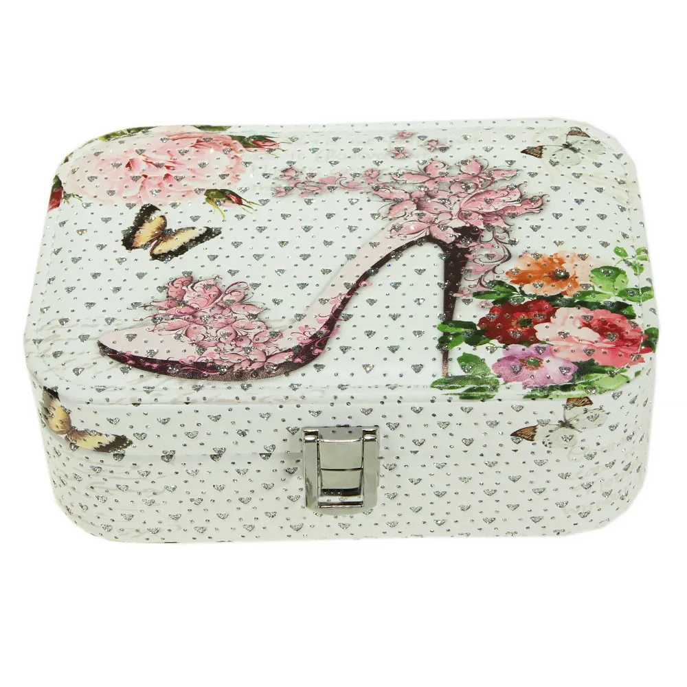 Элегантная шкатулка для украшений от бренда Passo Avanti придаст очарование вашему столику. Имеет прямоугольную форму. Выполнена в белом цвете с принтом, дополнена металлической фурнитурой. Модель с откидной крышкой, внутри множество отсеков для разных видов украшений и зеркальце. Внутри оформлена бархатистым текстильным материалом.