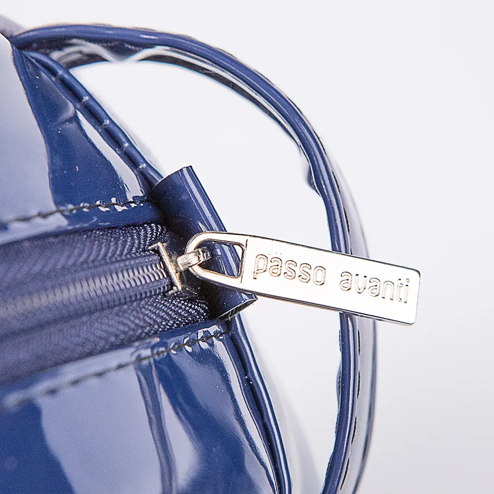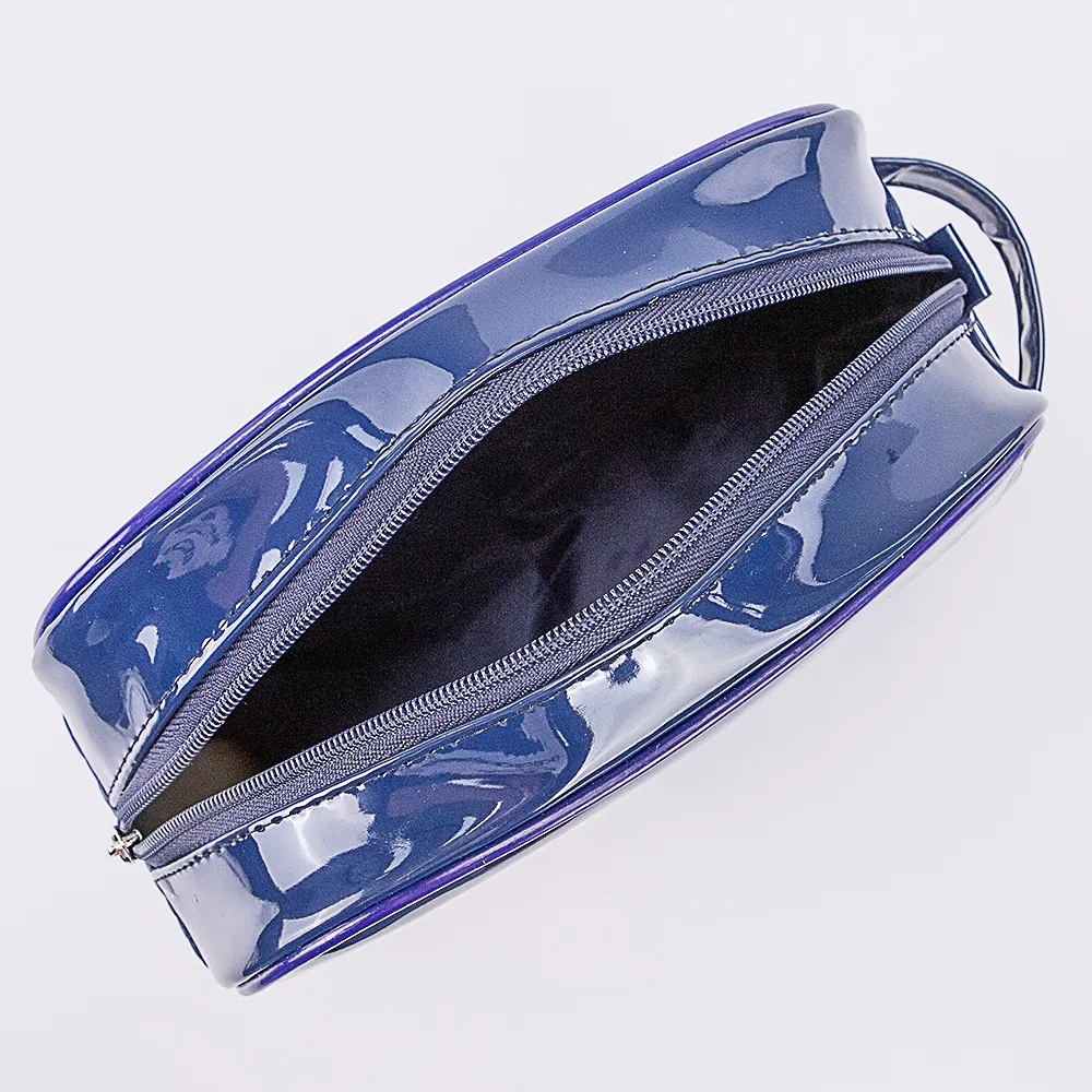 Косметичка от торговой марки Passo Avanti выполнена из искусственной лакированной кожи синего цвета. Имеется ручка-переноска и петля для крепления, по краям - окантовка. Отделение на молнии, с текстильной подкладкой. Внутри: два накладных кармана и карман на молнии.