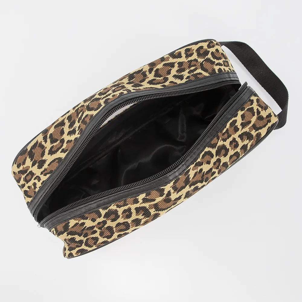 Косметичка от торговой марки Passo Avanti из текстильного материала с леопардовым принтом. Модель на молнии, внутри текстильная подкладка. Снаружи текстильная ручка для переноски.