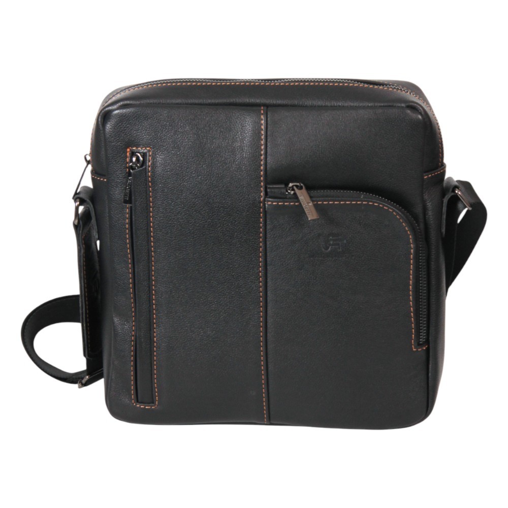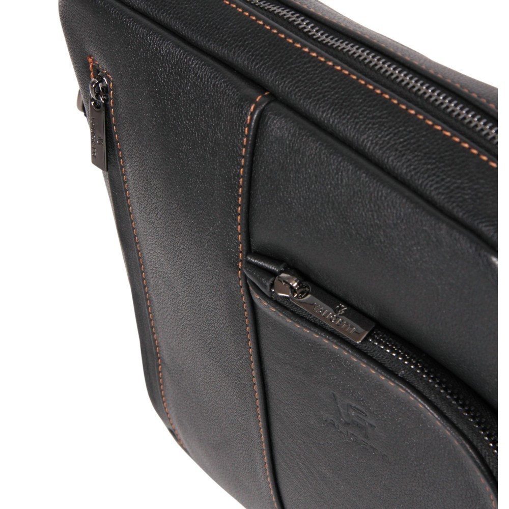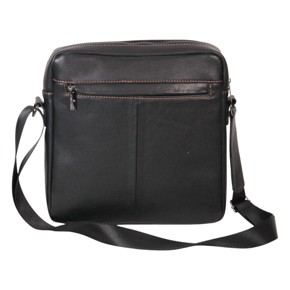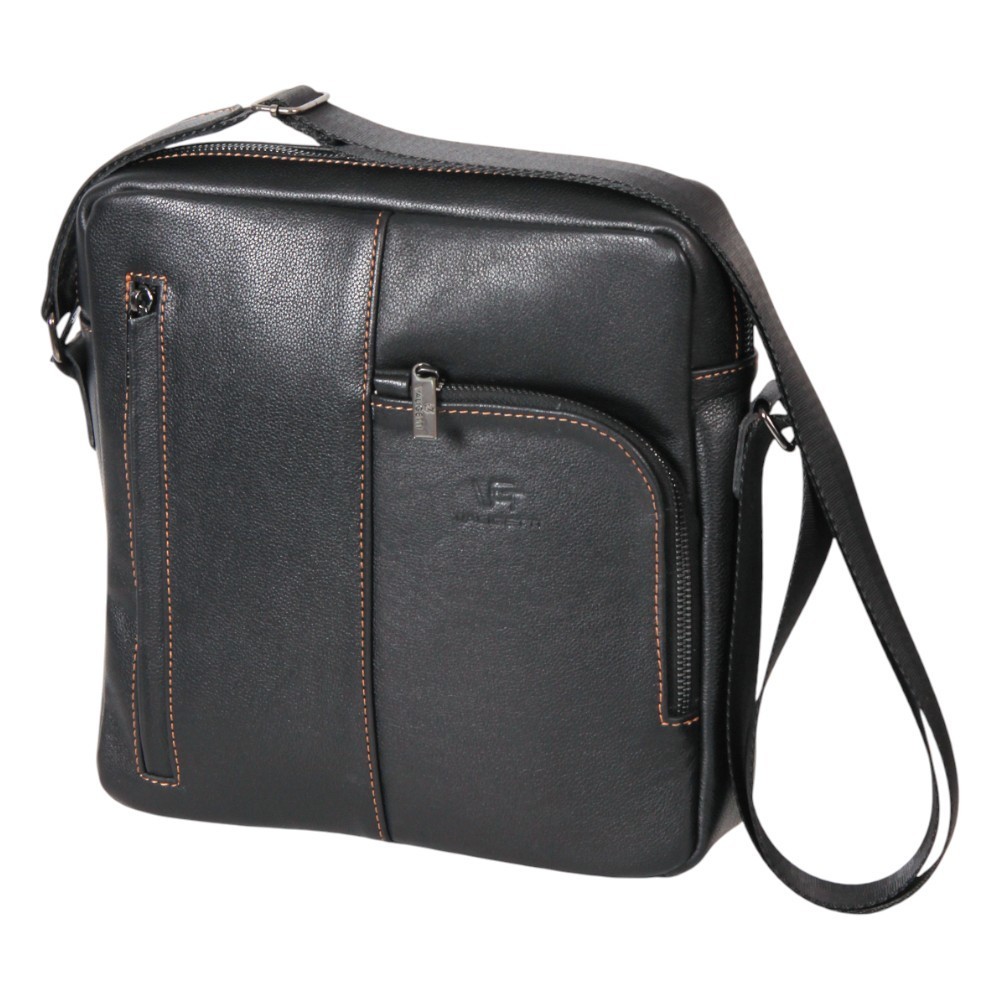 Сумка от бренда Valigetti выполнена в черном цвете из натуральной кожи. Модель с несъемным регулируемым текстильным плечевым ремнем, одно основное отделение на молнии, внутри фирменная текстильная подкладка, два накладных открытых кармана, один накладной карман на молнии. На лицевой стороне расположено два кармана на молнии, на задней стороне расположен один карман быстрого доступа на молнии.