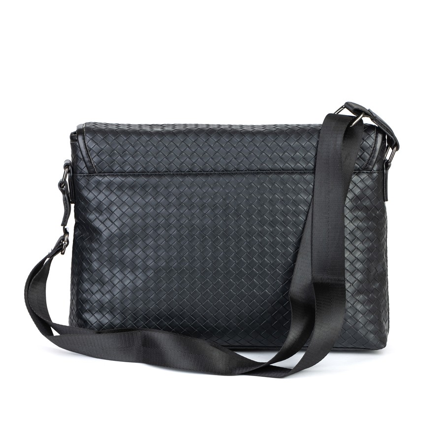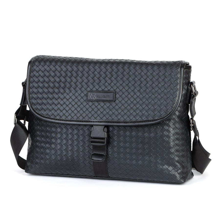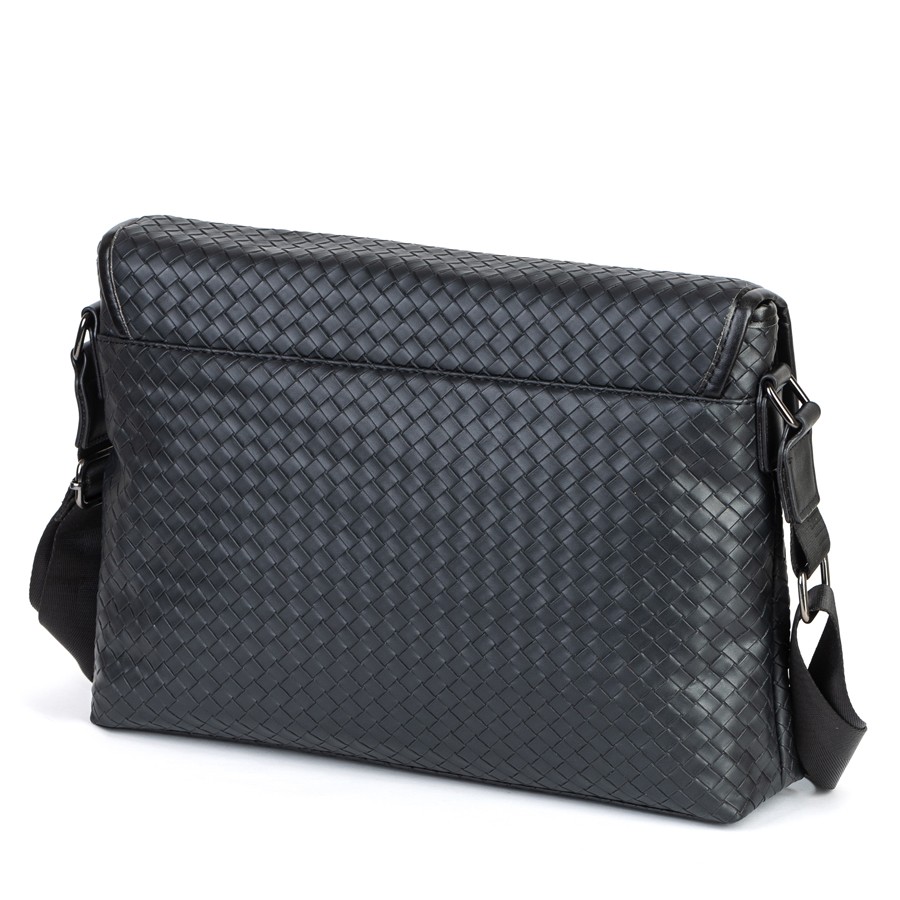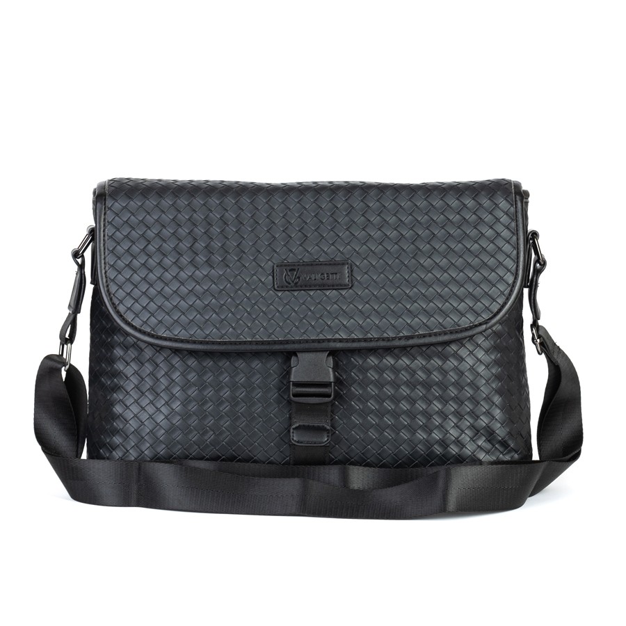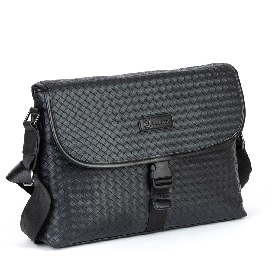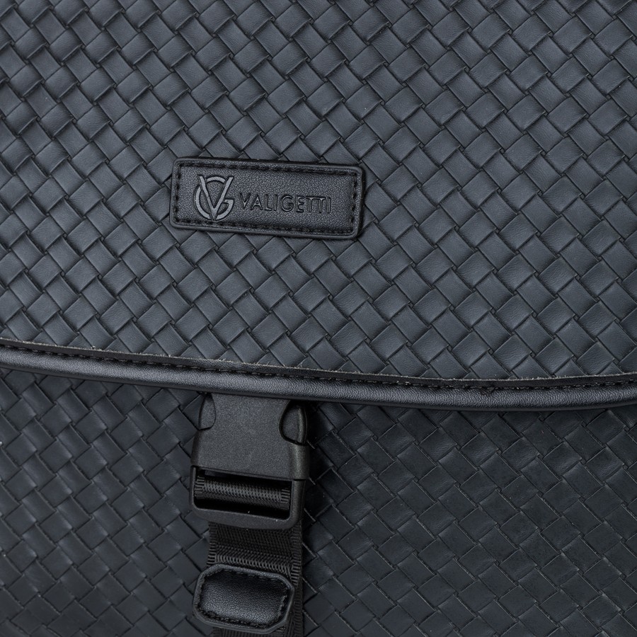 Сумка-планшет от торговой марки Valigetti из искусственной кожи черного цвета с тиснением под плетение. Модель с несъемным регулируемым плечевым ремнем, выполненным из текстильного материала. Закрывается клапаном на застежке фастекс. Отделение на молнии. Внутри: текстильная подкладка, карман на молнии.