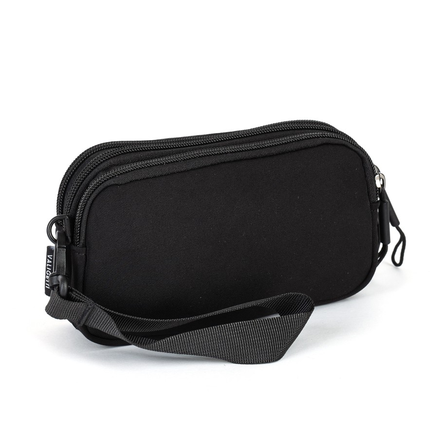 Сумка от торговой марки Valigetti из практичного материала черного цвета. Модель со съемным регулируемым плечевым и поясным ремнем, съемным ремешком для запястья. Три отделения на молнии, с текстильной подкладкой; в заднем – карман на молнии. Лицевая сторона декорирована аппликацией в виде мишки. Молодежная текстильная коллекция представлена моделями, выполненными из трех видов материалов: прочной ткани рип-стоп, блестящего и матового текстиля. Фурнитура повышенной прочности обеспечивает плавность движения замка и долговечность использования.