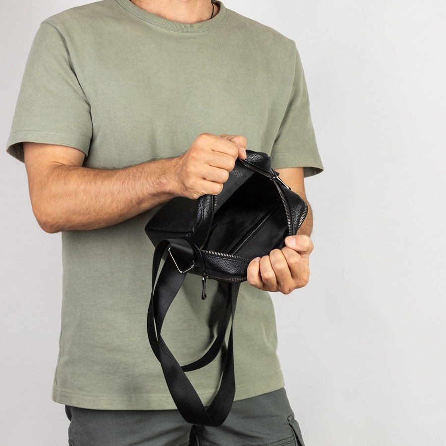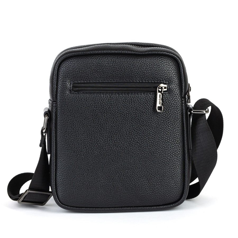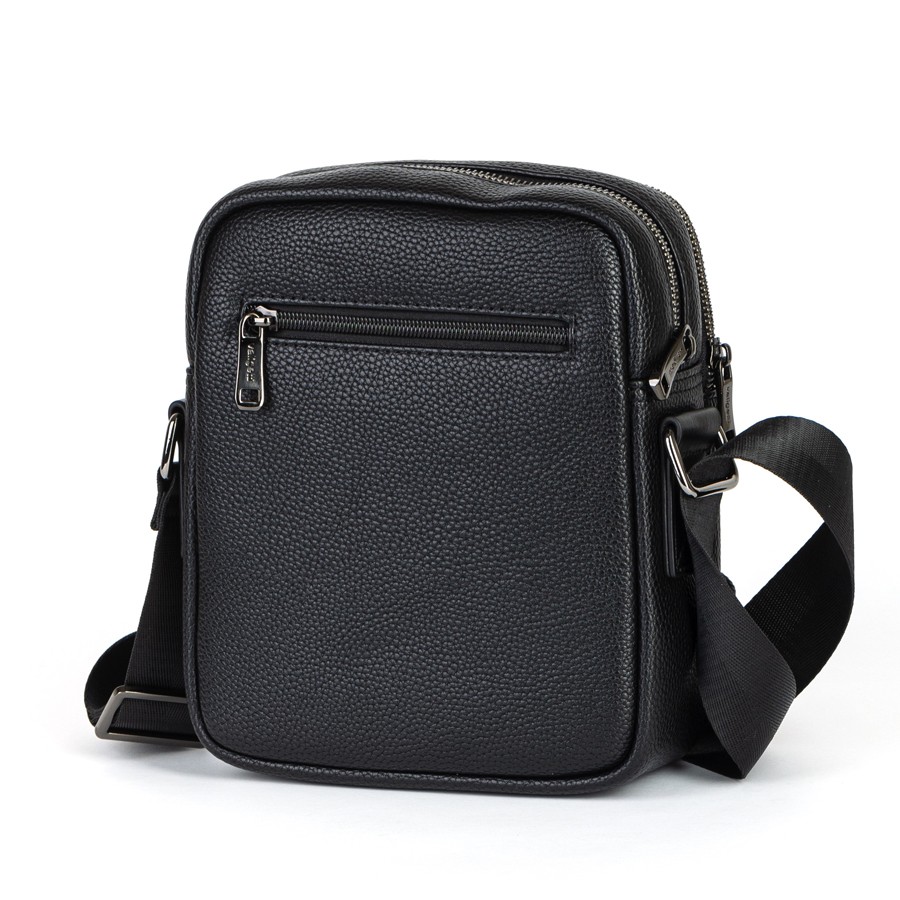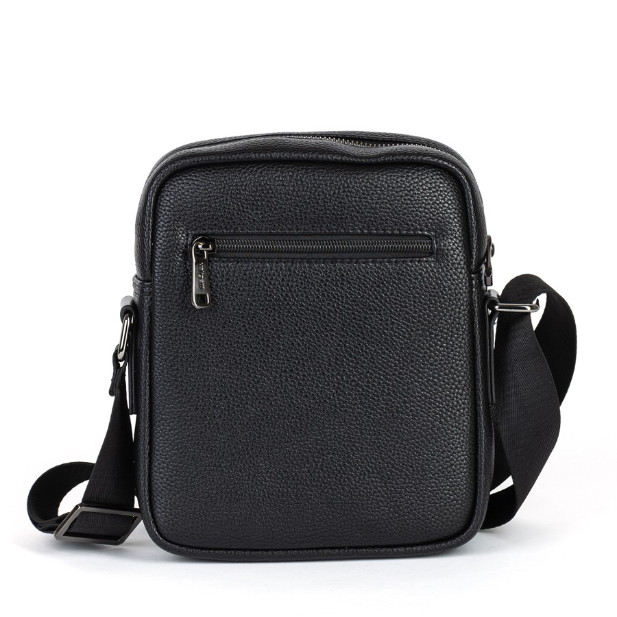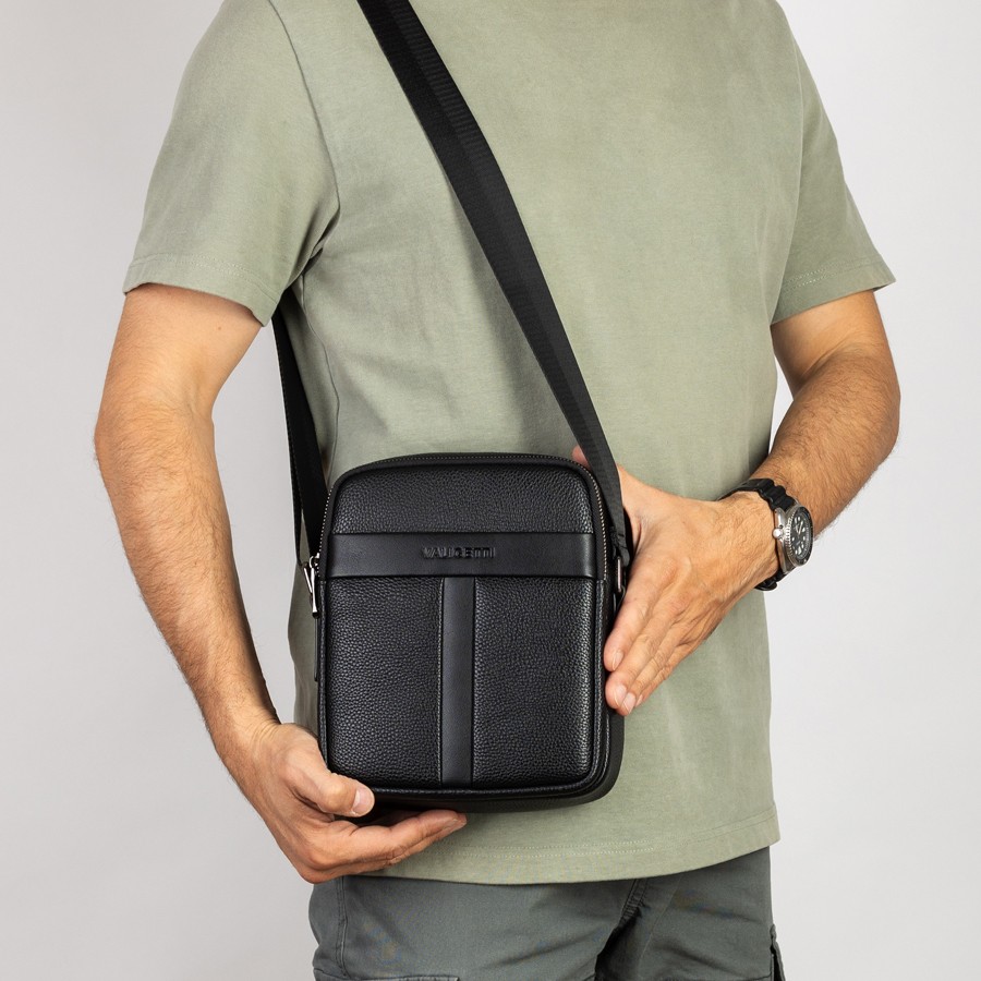 Мужская сумка-планшет бренда Valigetti из искусственной кожи черного цвета зернистой структуры. Прошита фирменной подкладочной тканью. Имеет регулируемый текстильный плечевой ремень. Внутри основного отделения под молнией карман на молнии и кармашек для мелких вещей. На лицевой стороне имеются дополнительное отделение под молнией. На задней стороне есть карман на молнии