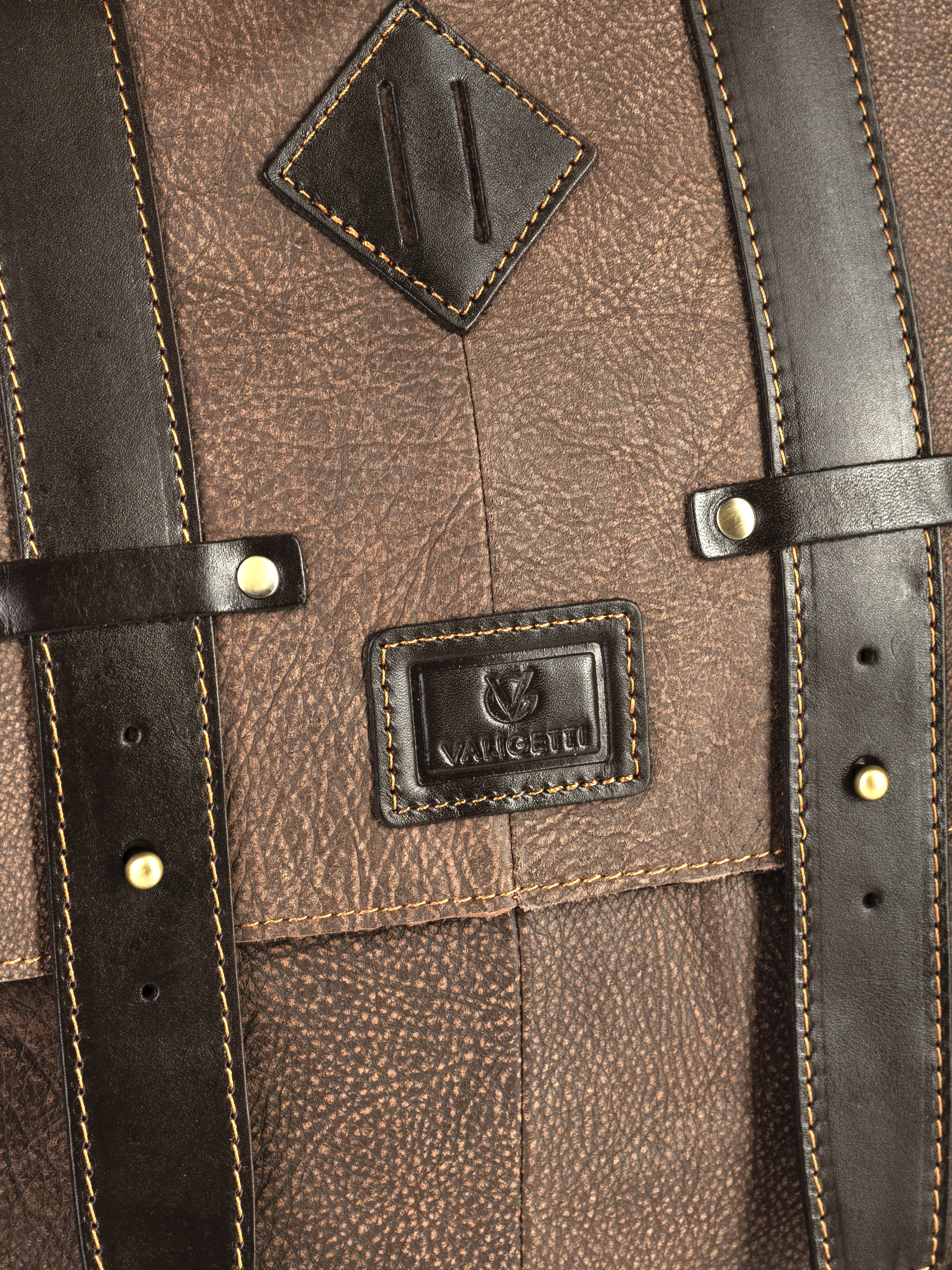 Мужской планшет от бренда Valigetti выполнен из натуральной кожи кофейного и коричневого оттенков с контрастной отстрочкой. Это вместительная модель с несъемным регулируемым ремнем через плечо. Карман на молнии закрывается клапаном на магнитных кнопках. Также есть вместительный накладной карман и отделение на молнии на задней стороне. Внутри сумки три отделения, разделенные тканевыми перегородками, которые закрываются кнопкой. Кроме того, есть карман на молнии и два накладных кармана.