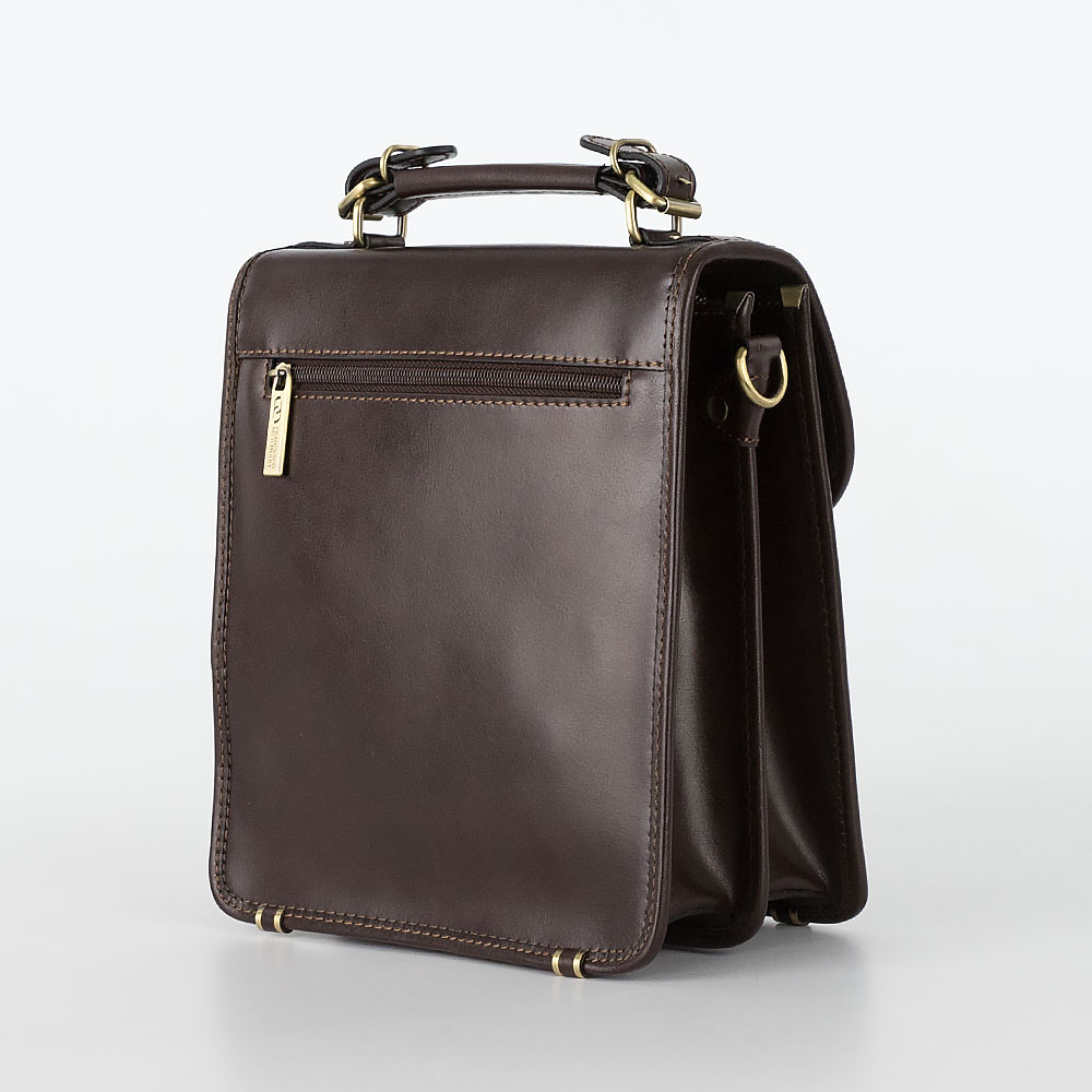 Деловая мужская сумка Francesco Molinary выполнена в тёмно-коричневом цвете из натуральной кожи с отличным качеством отделки и дополнена золотистой металлической фурнитурой. Снаружи карман на молнии, эргономичная ручка и клапан на замке-щеколде с ключиком, под ним накладной карман без застёжки с двумя кармашками для карточек и два независимых отделения, внутри два кармана на молниях, петельки для письменных принадлежностей и удобная петля с кнопкой для ключей. В комплекте предусмотрен плечевой ремень.