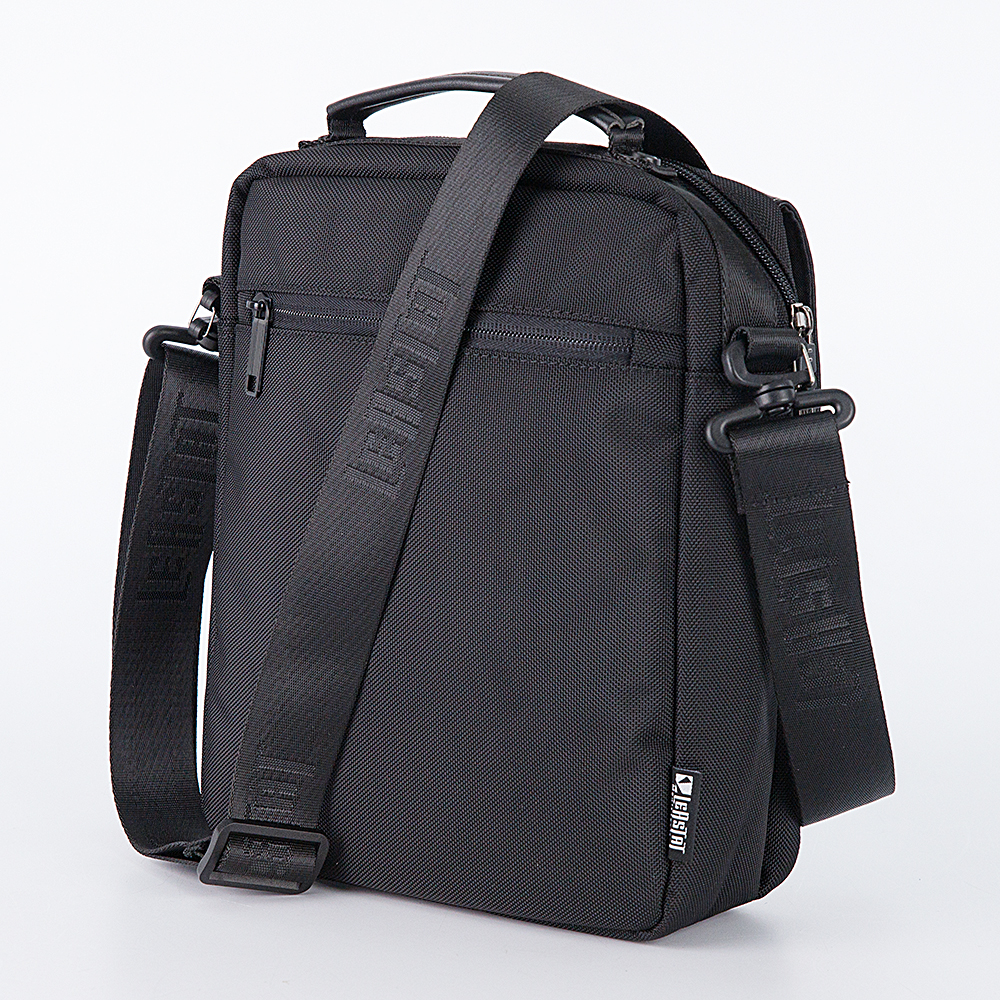 Сумка-планшет от торговой марки Leastat из плотного текстильного материла и искусственной кожи черного цвета. Модель вертикальной ориентации с одной ручкой и несъемным регулируемым плечевым ремнем. Отделение на молнии. Внутри: фирменная подкладка, карман на молнии, органайзер для канцелярских принадлежностей, крепление для ключей. На лицевой стороне – клапан с карманом на молнии, закрывающий накладной карман на молнии и два накладных кармана без застежки. На задней стороне – карман на молнии.
