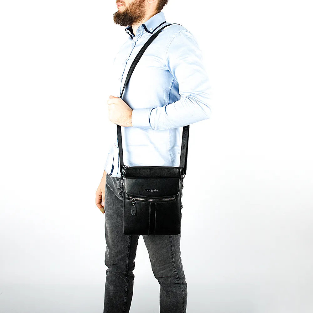 "Сумка-планшет от торговой марки Poshete выполнен из искусственной мягкой кожи в чёрном цвете. Модель вертикальной ориентации, со съемным регулируемым плечевым ремнем, выполненным из текстильного материала. Закрывается молнией. Внутри: фирменная подкладка, пять отсеков, в одном из которых – карман на молнии, в другом – накладной карман. На лицевой стороне – карман на молнии, вместительный карман с клапаном на двух скрытых магнитах; внутри: накладные карманы для карт. На задней стороне – карман на молнии.