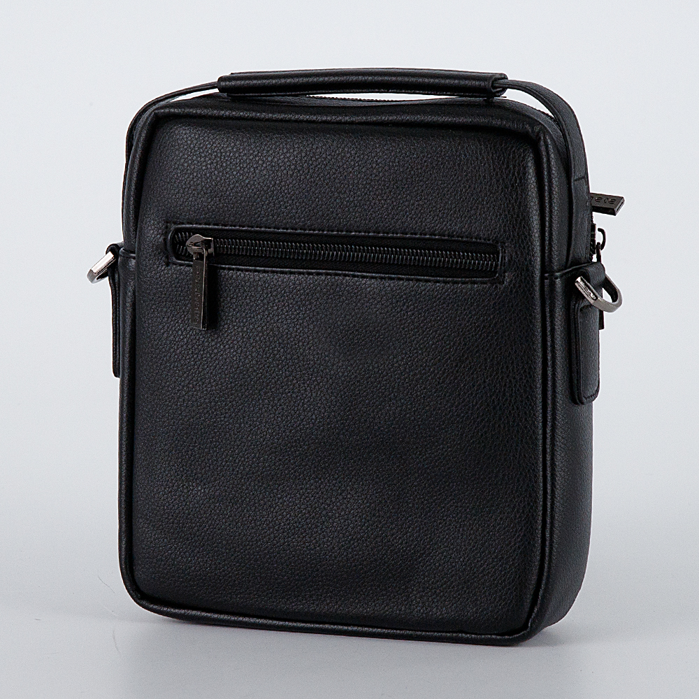 Повседневная мужская сумка Poshete выполнена в чёрном цвете из искусственной кожи с текстильной подкладкой и металлической фурнитурой. Имеет одну ручку для переноски и один плечевой ремень из текстиля. Тип застёжки - молния. Снаружи два кармана на молниях, спереди и сзади.