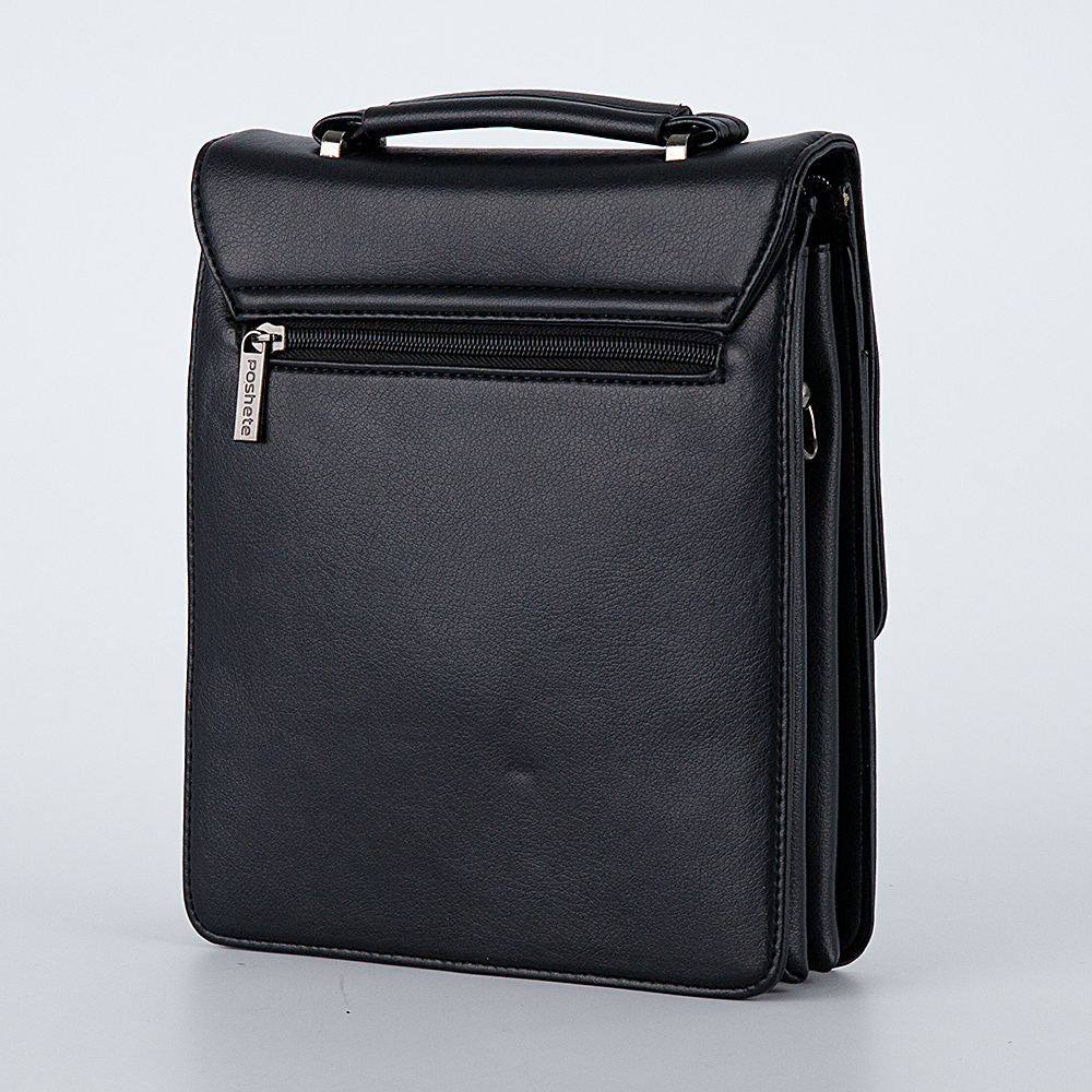 Повседневный мужской планшет от бренда Poshete выполнен из мягкой искусственной кожи, с отличным качеством отделки и металлической фурнитурой. Модель чёрного цвета, по размеру подойдёт для небольшого планшета, с эргономичной ручкой и съёмным текстильным ремнём, который регулируется по длине. Сзади прорезной карман на молнии, спереди клапан на магните, под ним накладной карман без застёжки и молния основного отделения, внутри два отсека и два дополнительных кармашка. Самые необходимые вещи всегда будут под рукой.