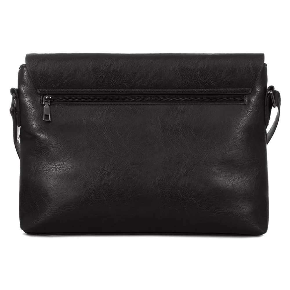 Стильная, деловая мужская сумка от бренда Mr.Bag это хороший повседневный вариант, куда поместятся все необходимые документы. Сумка выполнена из мягкой искусственной кожи и оснащена регулируемым текстильным ремнём. Сзади прорезной карман на молнии, спереди клапан на двух магнитах, под ним накладной карман без застёжки и основное отделение на молнии, внутри которого ещё один карман на молнии. Модель чёрного цвета, практичная, дополнена металлической фурнитурой и декорирована «язычком».