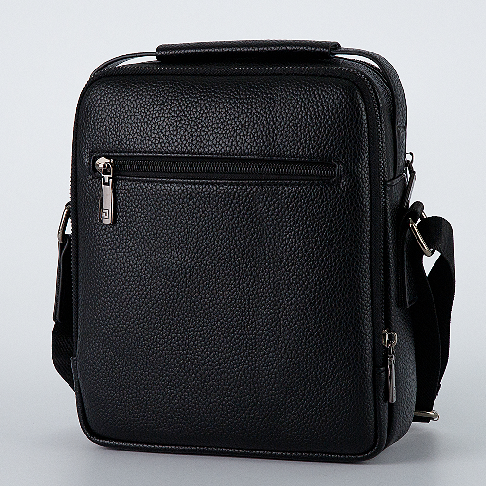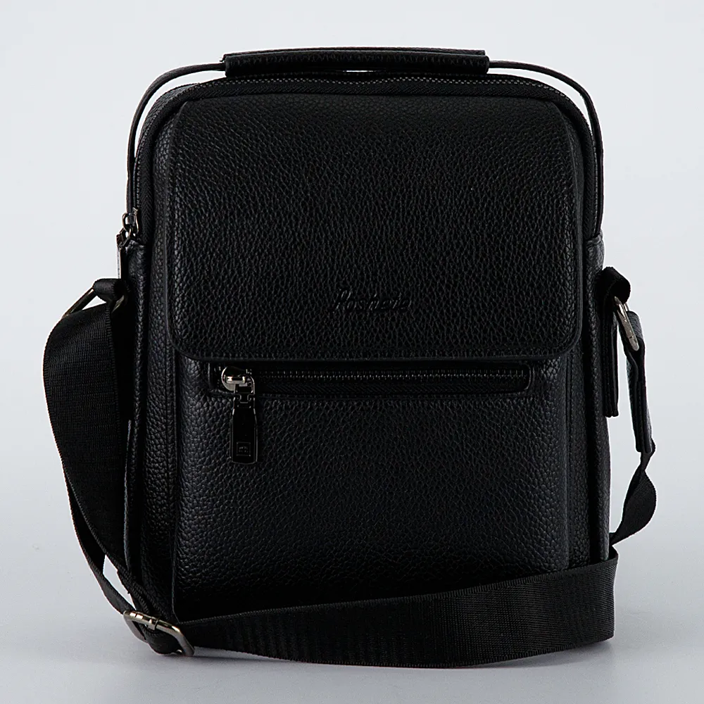 Стильная мужская сумка на каждый день от бренда Poshete с отличным качеством отделки и металлической фурнитурой, выполнена из фактурной искусственной кожи. Самые необходимые вещи всегда будут под рукой. Сумка чёрного цвета, на текстильном ремне, который регулируется по длине и дополнена эргономичной ручкой. Снаружи два прорезных кармана на молниях и один накладной карман под клапаном на двух магнитах. Два независимых отделения на молниях, в одном два дополнительных кармашка, другое предназначено для планшета.