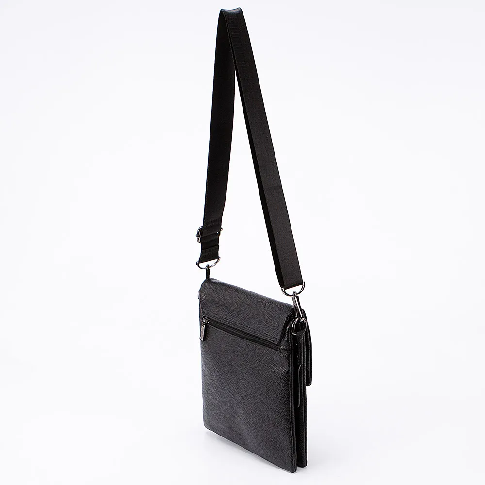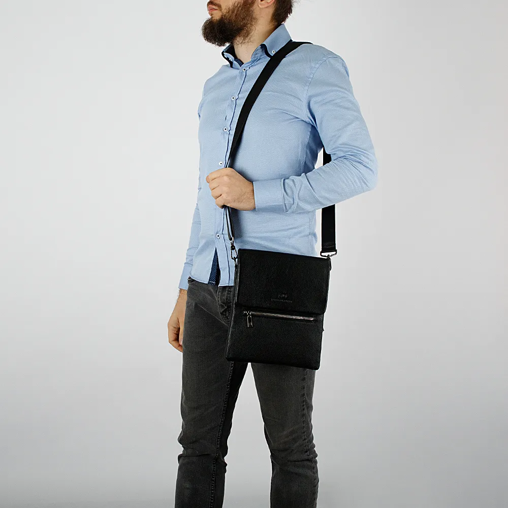 Повседневный мужской планшет от бренда Francesco Molinary выполнен из натуральной кожи с качеством и элегантностью. Модель чёрного ц вета, вертикальной прямоугольной формы. Носится через плечо на регулируемом текстильном ремне. Снаружи карман на молнии и клапан на магните, под ним основное отделение на молнии, внутри текстильная подкладка и кармашки. Сзади дополнительный карман на молнии. Практичный, хорошо подойдёт для Ipad.