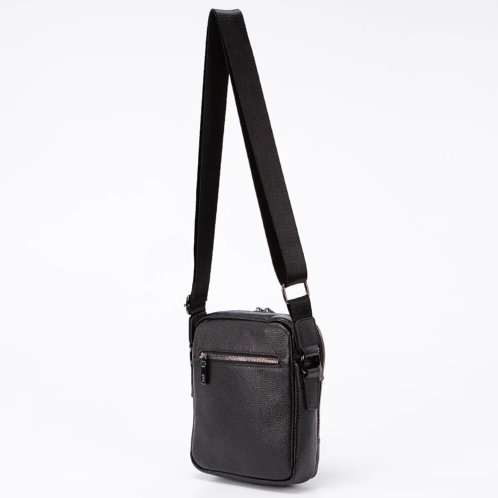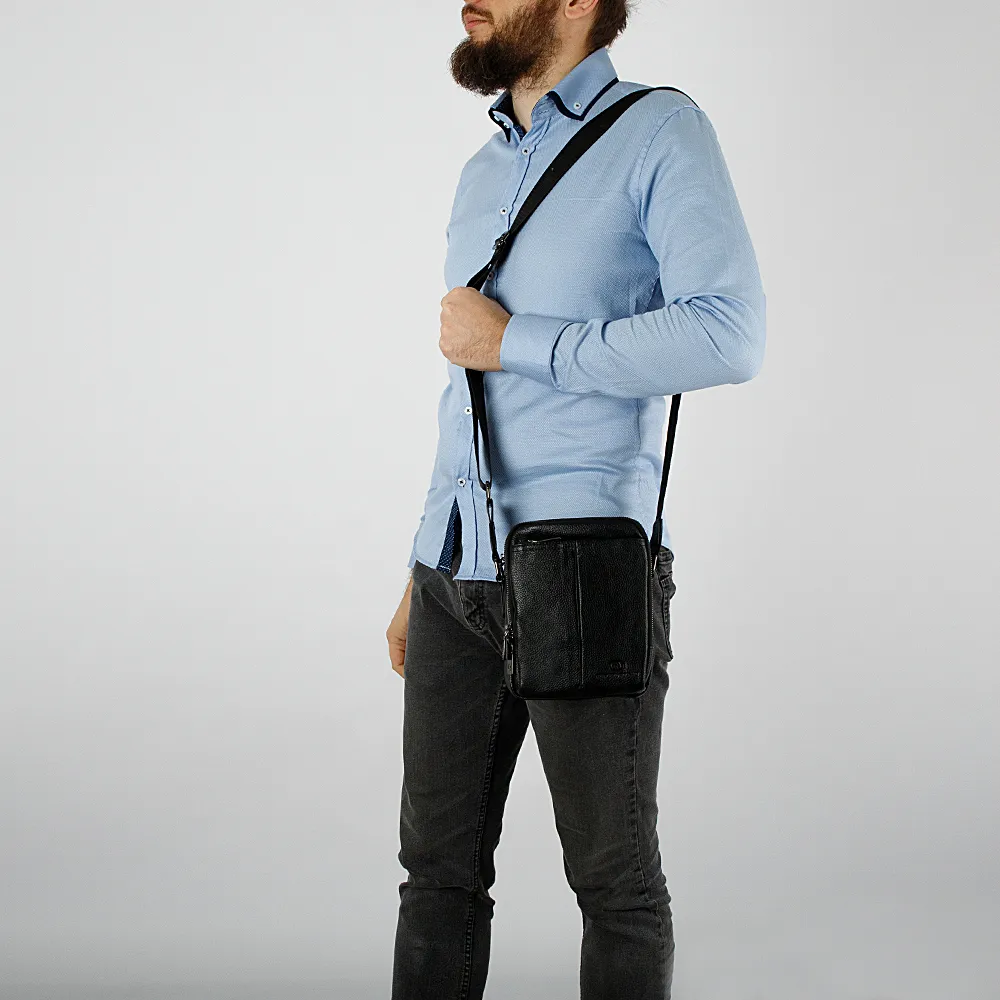 Повседневная мужская сумка от бренда Francesco Molinary выполнена из натуральной кожи с качеством и элегантностью. Модель чёрного цв ета, вертикальной прямоугольной формы. Носится через плечо на регулируемом текстильном ремне. Снаружи два кармана на молниях, спереди и сзади. Сумка с двумя независимыми отделениями на молниях, внутри текстильная подкладка и кармашки. Практичная, хорошо подойдёт для Ipad mini.