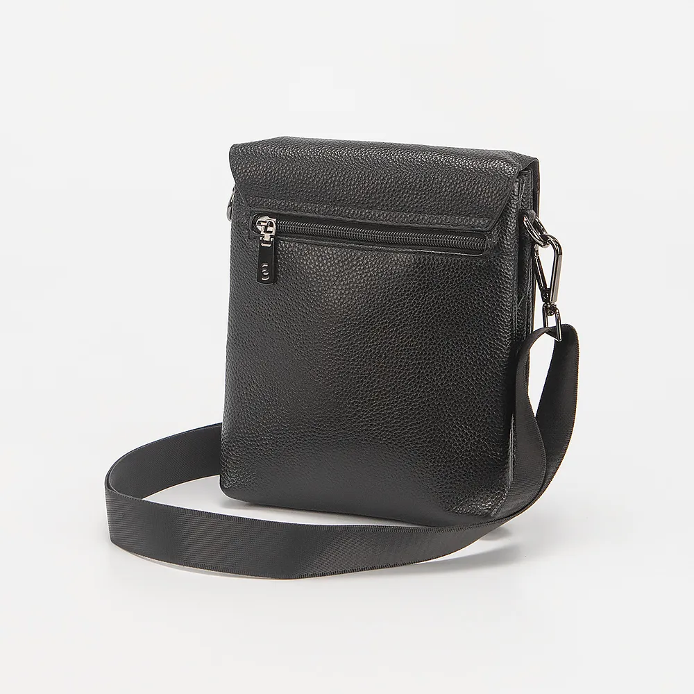 Сумка-планшет от торговой марки Francesco Molinary из натуральной зернистой кожи черного цвета. Компактная модель вертикальной ориен тации со съемным регулируемыми плечевым ремнем, выполненным из текстильного материала. Закрывается клапаном на магните. Два отделения на молнии с фирменной подкладкой. В переднем – накладной карман, в заднем – карман на молнии. Между отделениями имеется небольшой отсек без застежки. На лицевой стороне – вертикальный карман на молнии. На задней – карман на молнии.
