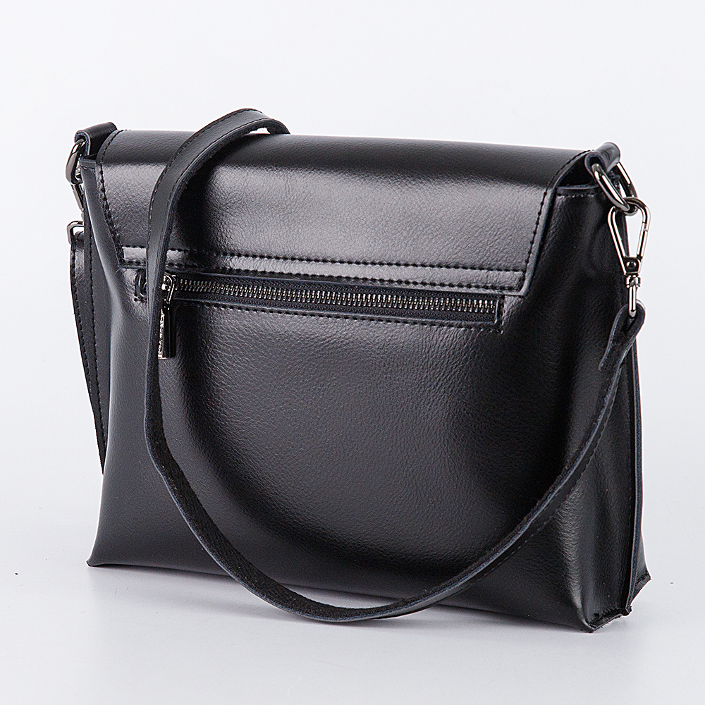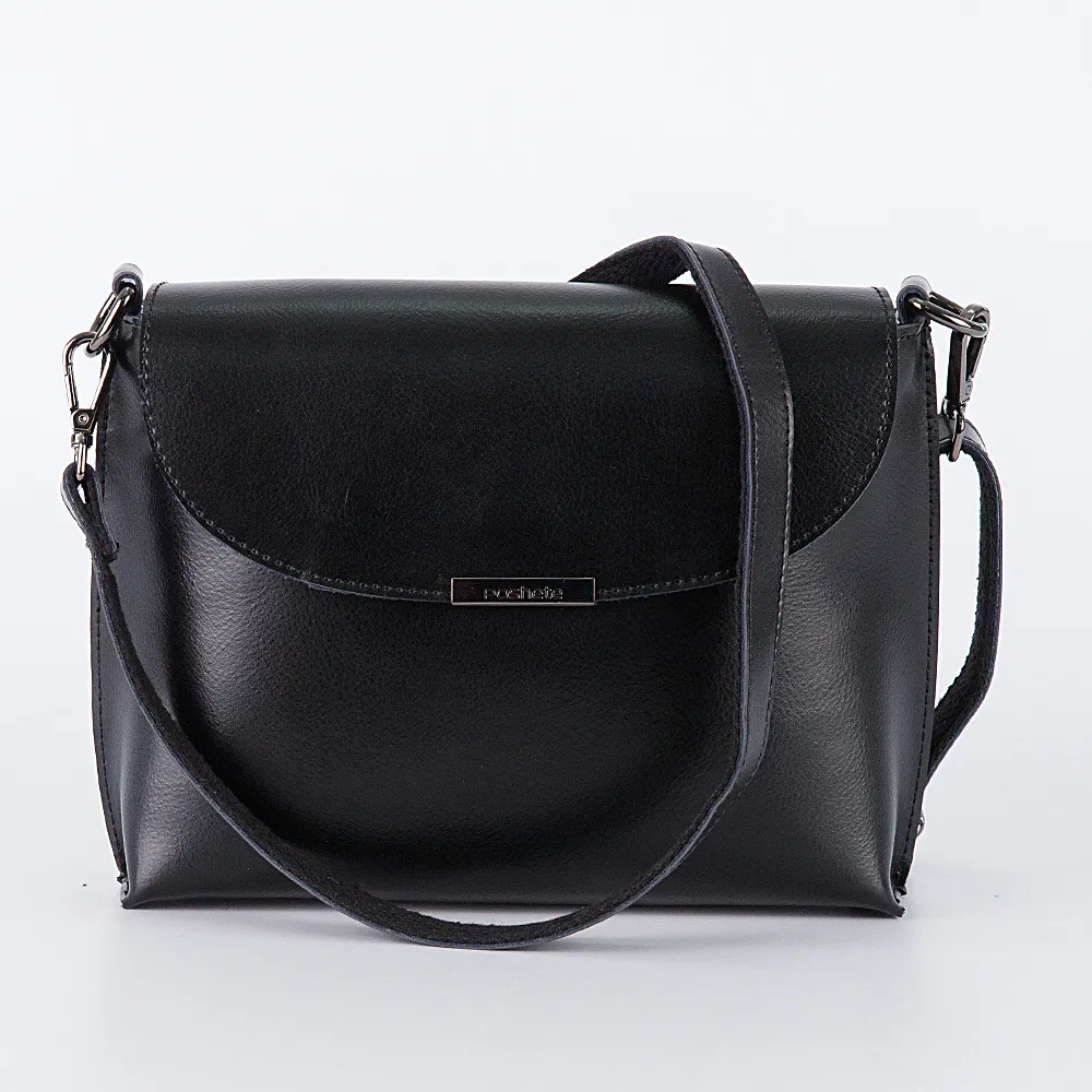 Сумка кросс-боди от торговой марки Poshete выполнена из гладкой натуральной кожи черного цвета. Жесткая модель со съемным регулируемым плечевым ремнем. Закрывается клапаном на магнитной кнопке. Отделение на молнии. Внутри: фирменная подкладка, средник и карман на молнии, накладной карман. На задней стороне – карман на молнии.