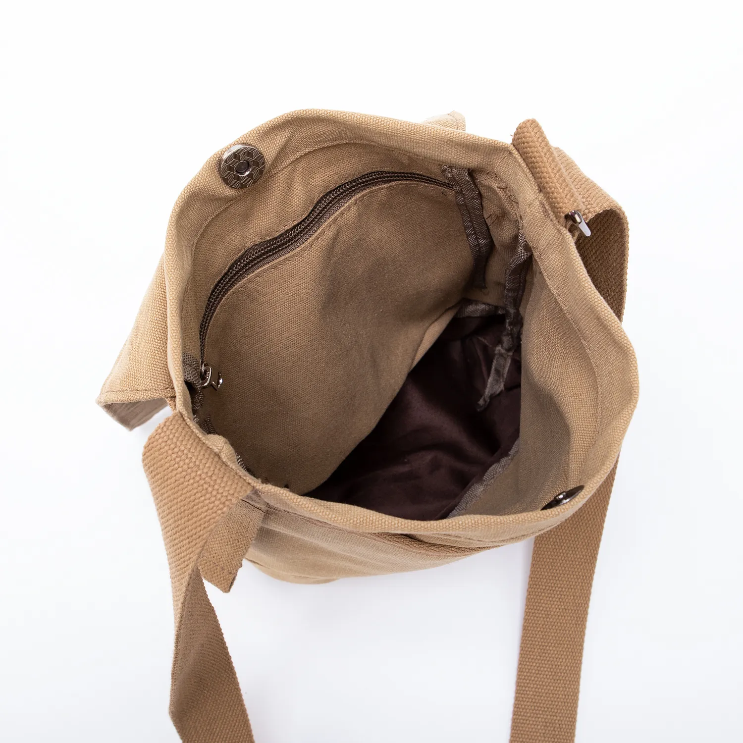 Сумка-планшет от торговой марки Ecotope из брезентового материала светло-коричневого цвета camel. Модель вертикальной ориентации с несъемным регулируемым плечевым ремнем. Клапан на магнитной кнопке закрывает накладной карман без застежки, кольцо для крепления и отделение. Отделение фиксируется магнитной кнопкой. Внутри: без подкладки, навесной карман на молнии. На задней стороне – карман на молнии.