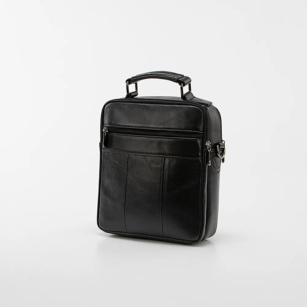 Сумка от торговой марки Valigetti из натуральной кожи черного цвета. Модель с одной ручкой и съемным регулируемым плечевым ремнем, выполненным из текстильного материала. Два отделения на молнии, с фирменной подкладкой. В заднем отделении – карман на молнии. На лицевой стороне – три кармана на молнии. На задней стороне – карман на молнии.