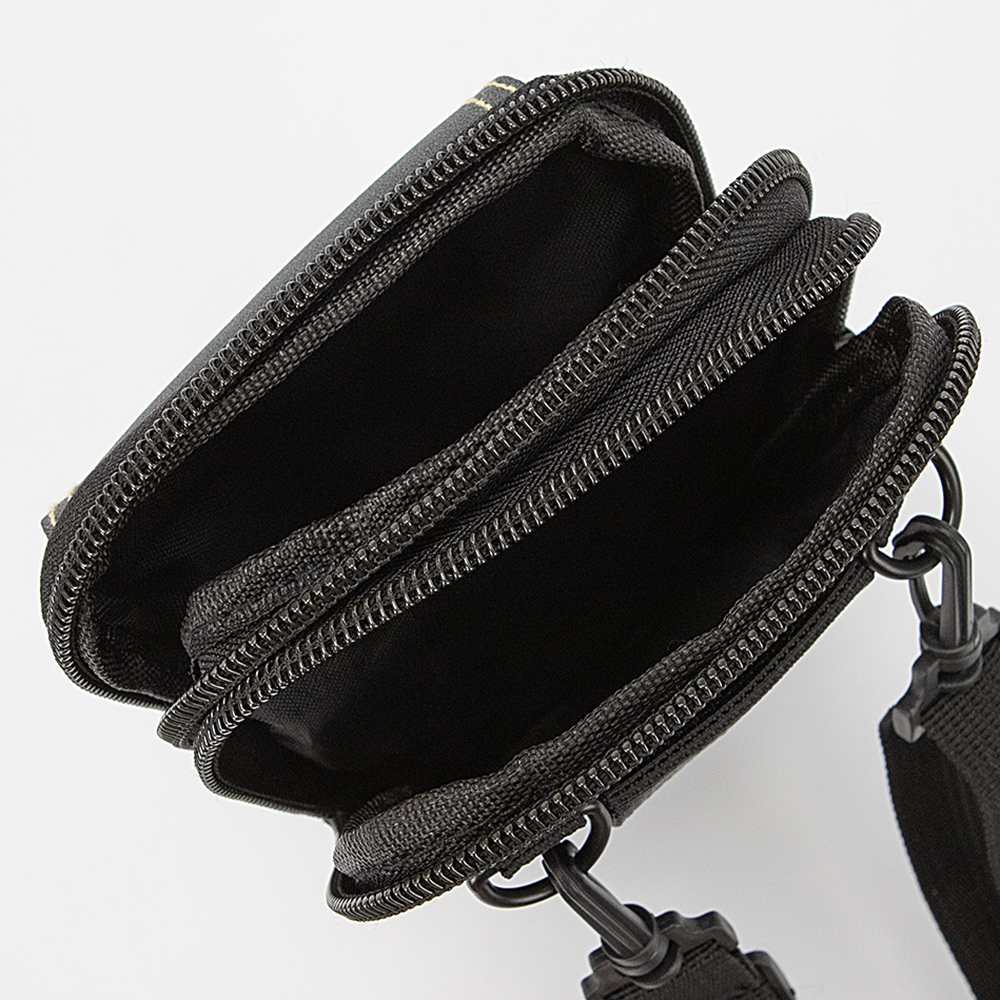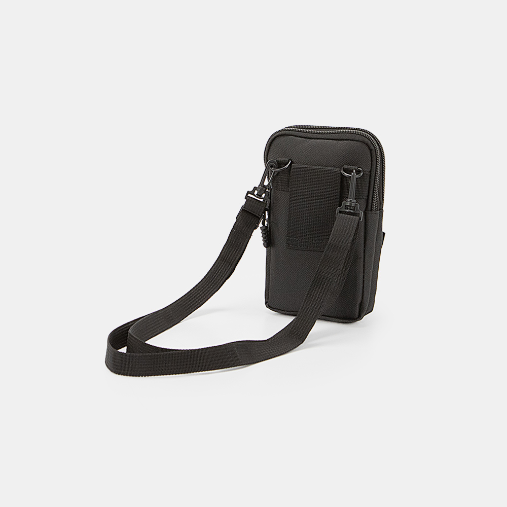 Сумка от торговой марки Ecotope из практичного текстильного материала черного цвета. Модель со съемным регулируемым плечевым ремнем. Два отделения на молнии, с текстильной подкладкой. На лицевой стороне – накладной карман с клапаном на застежке фастекс; внутри: кармашек для карты. На задней стороне – лямка для ношения на ремне.