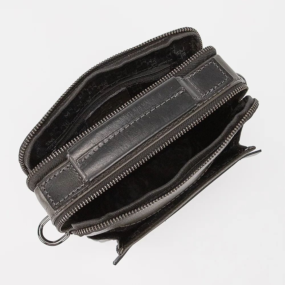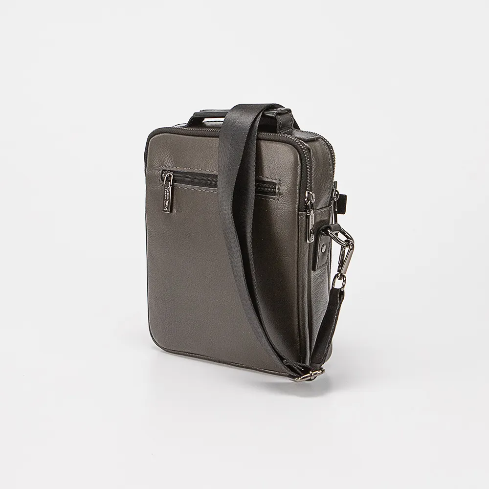 Сумка от торговой марки Francesco Molinary из натуральной кожи в сочетании черного и серого цвета. Модель вертикальной ориентации с одной ручкой и съемным регулируемым плечевым ремнем. Два отделения на молнии, с текстильной подкладкой. В одном из отделений – карман на молнии. На лицевой стороне – накладной карман. На задней стороне – карман на молнии.