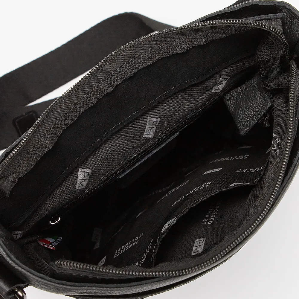 Сумка-планшет от торговой марки Francesco Molinary из натуральной кожи темно-серого цвета. Модель с несъемным регулируемым плечевым ремнем. Клапан на магнитных кнопках закрывает накладной карман и отделение с фирменной подкладкой. Внутри карман на молнии, накладной карман. На задней стороне - карман на молнии.