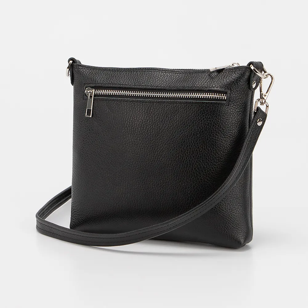 Сумка-планшет от торговой марки Poshete из натуральной кожи черного цвета. Плоская квадратная модель со съемным регулируемым плечевым ремнем. Отделение на молнии. Внутри: текстильная подкладка, карман на молнии. На задней стороне - карман на молнии.