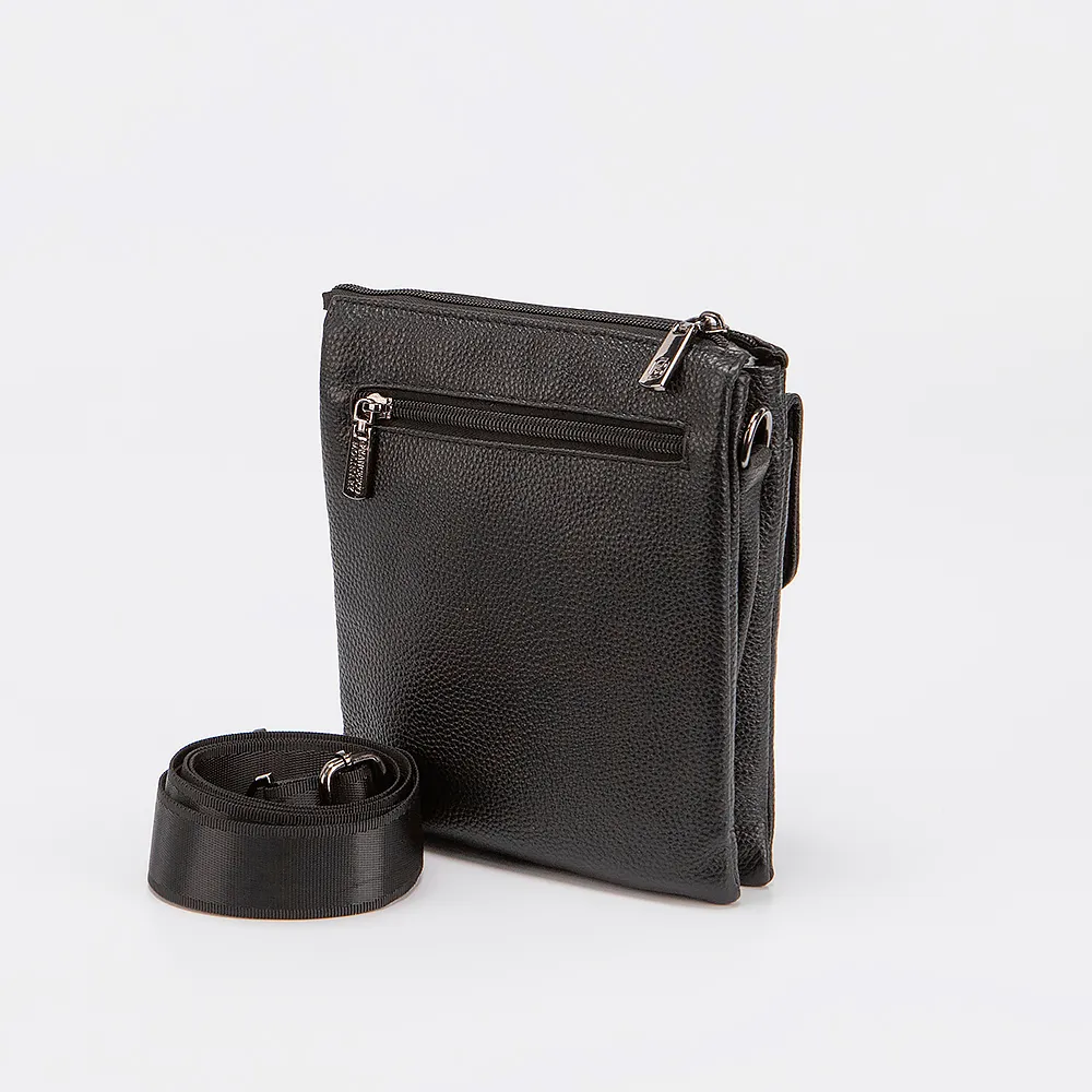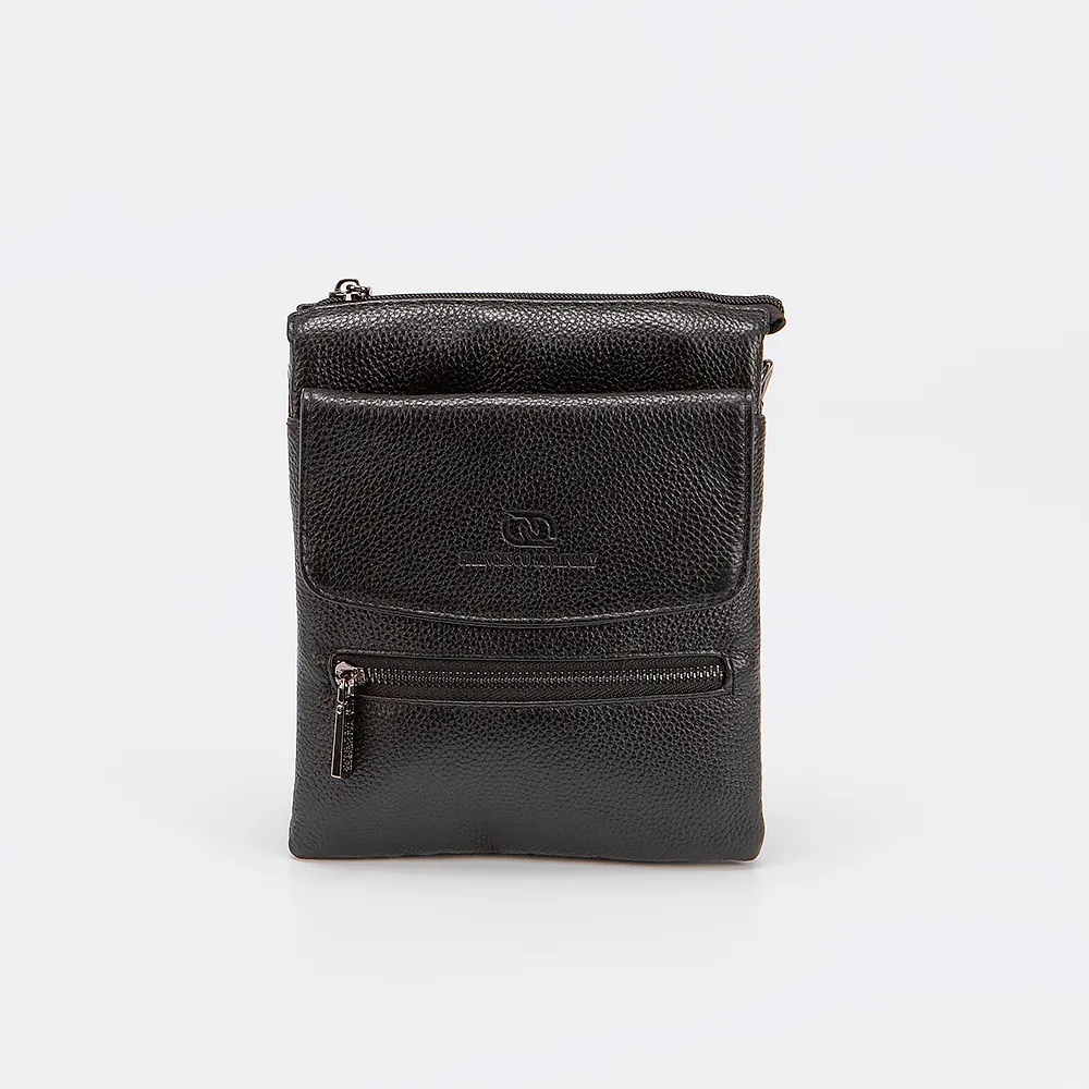 Сумка-планшет от торговой марки Francesco Molinary выполнена из натуральной зернистой кожи черного цвета. Модель с длинным регулируемым плечевым ремнем из текстильного материала. Отделение на молнии. Внутри: два отсека, фирменная текстильная подкладка, карман на молнии, накладной карман. На лицевой стороне - карман на молнии и накладной карман с клапаном. На задней стороне - карман на молнии.