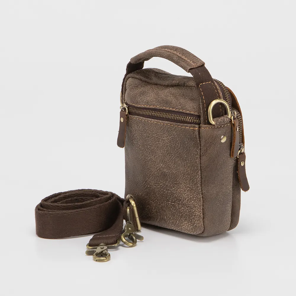 Сумка от торговой марки Poshete выполнена из натуральной кожи коричневого цвета с эффектом потертости. Модель с ручкой и съемным регулируемым плечевым ремнем из текстильного материала. Отделение на молнии. Внутри: текстильная подкладка. С лицевой стороны - клапан, закрывающий карман на молнии. На задней стороне - карман на молнии.