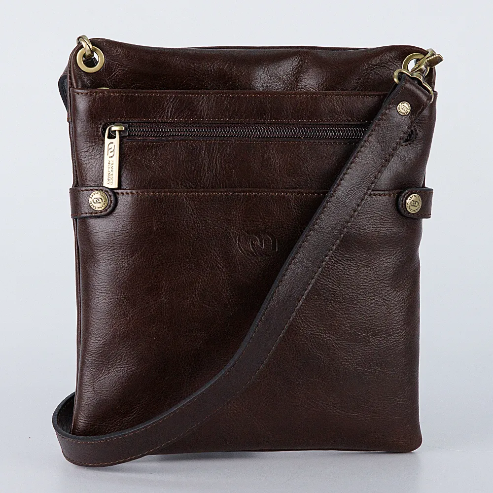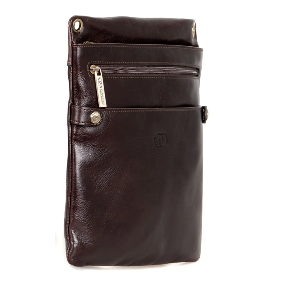 Компактный но вместительный мужской планшет Francesco Molinary выполнен из натуральной кожи в коричневом цвете и оформлен золотистой фурнитурой. Модель на длинном плечевом регулируемом плечевом ремне, с одним отделением под молнией, тремя внешними карманами под молниями.