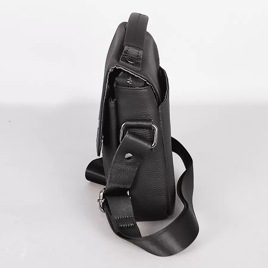 Сумка из натуральной кожи бренда Valigetti представлена в черном цвете. Модель с ручкой и несъемным регулируемым плечевым ремнем. Сумка закрывается клапаном на портфельный замок, под которым расположен накладной карман. С задней стороны расположен открытый карман. Внутри сумки одно отделение, внутренняя подкладка которого выполнена из фирменного материала. Также в сумке есть два кармана: один накладной, а второй потайной на молнии.