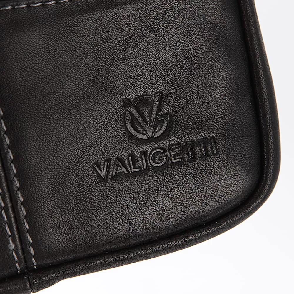 Деловая сумка бренда Valigetti, выполненная из натуральной кожи в черном цвете, имеет короткую ручку и съемный плечевой ремень. На лицевой стороне расположены три кармана быстрого доступа на молнии, а сзади – еще один карман на молнии для быстрого доступа. У сумки есть два основных отделения на молнии, в одном из которых распологается карман на молнии для мелочей. Эта стильная и функциональная сумка станет отличным выбором для тех, кто ценит качество и комфорт