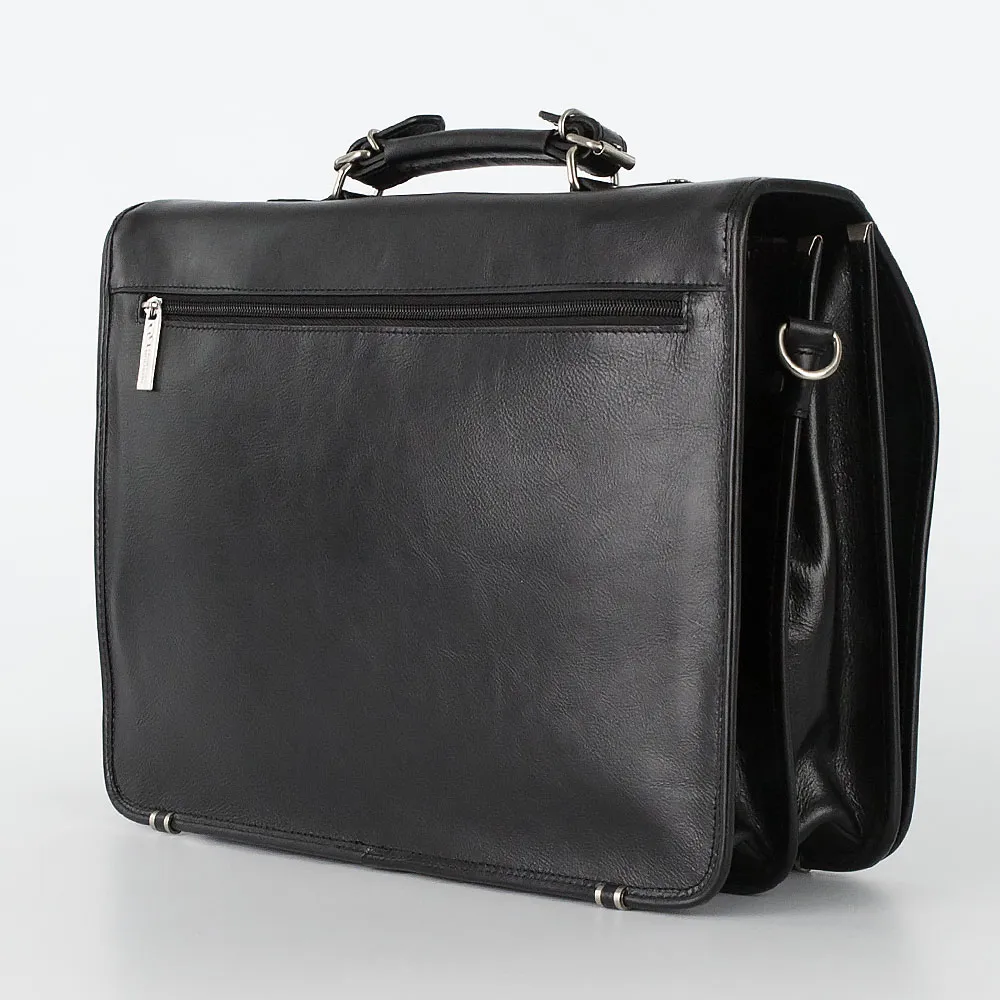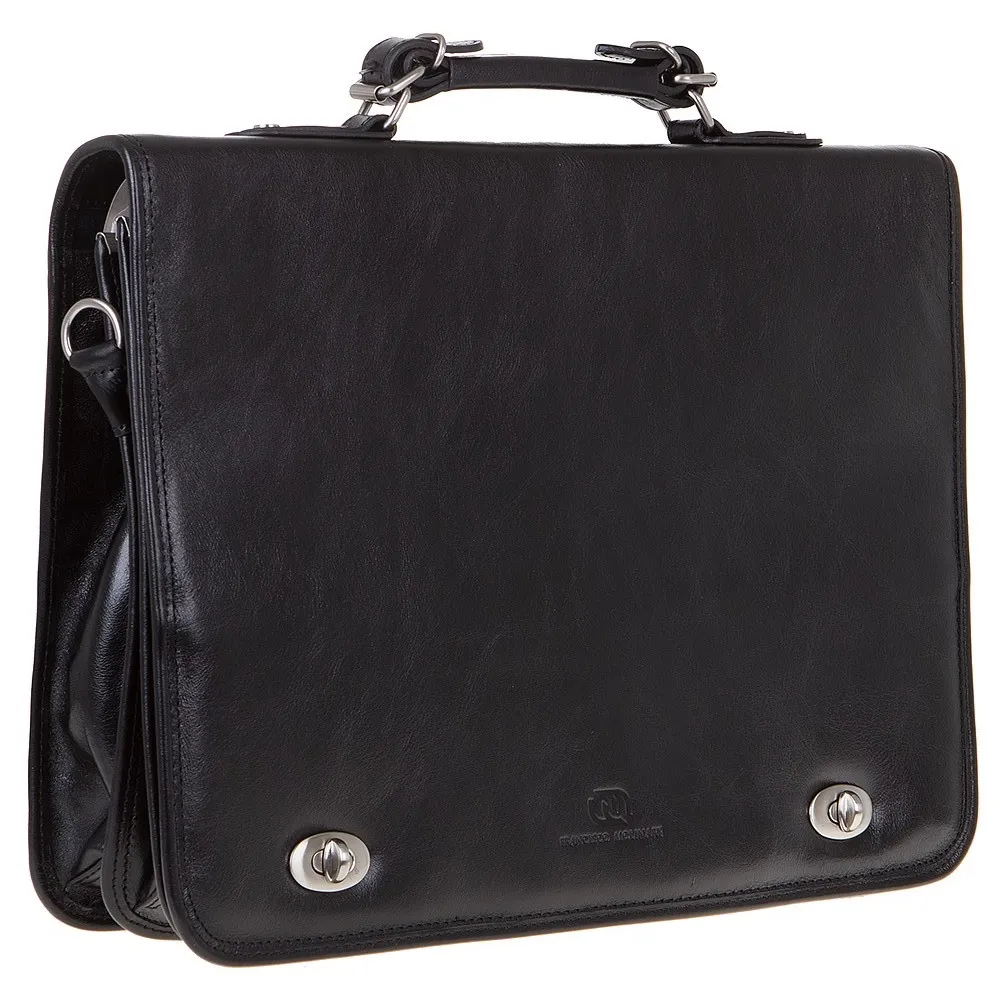 Классический мужской портфель Francesco Molinary формата А4. Модель имеет два отдела с текстильной отделкой, разделенных средником на молнии, закрывается на крышку с двумя вращающимися замочками. Внутри несколько прорезных карманов под молнией и накладных карманов без застежки, а также карман на молнии с задней внешней стороны. Фурнитура и ножки на дне портфеля металлические серебристого цвета. В комплекте съемный регулируемый кожаный ремень на плечо.