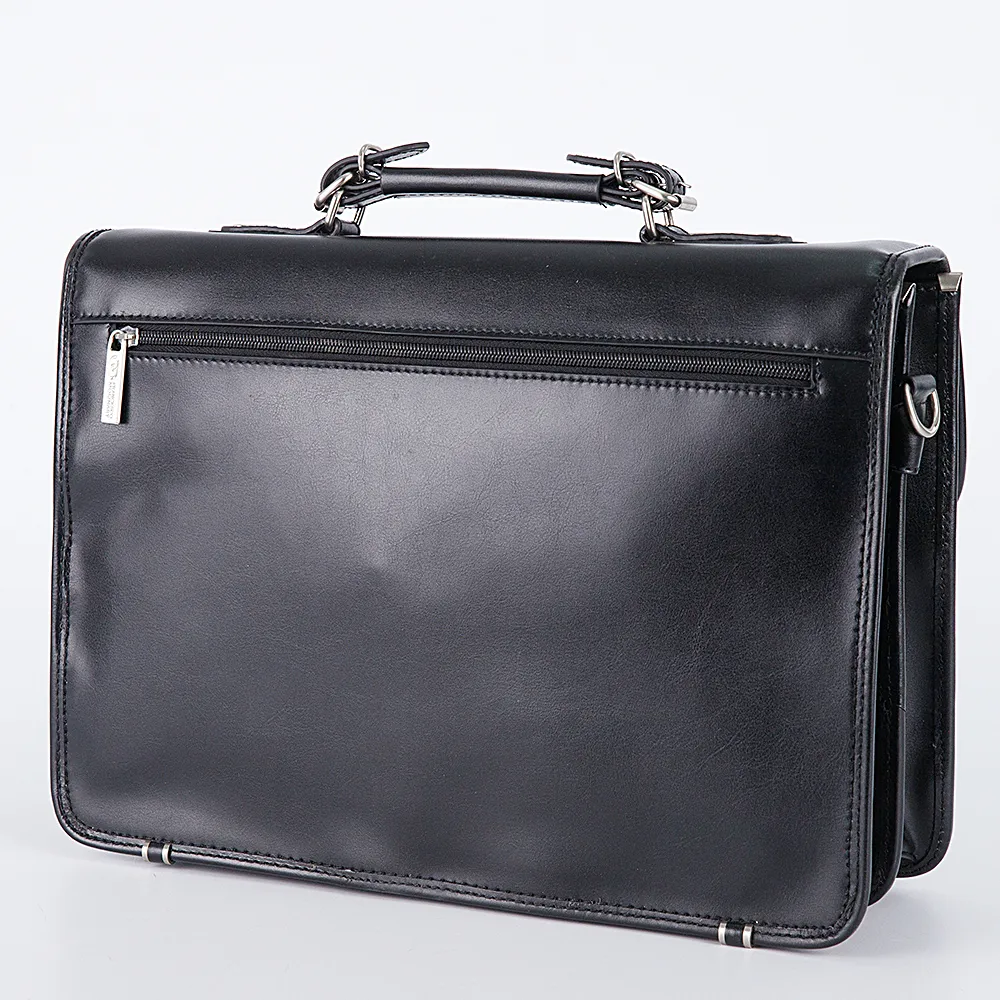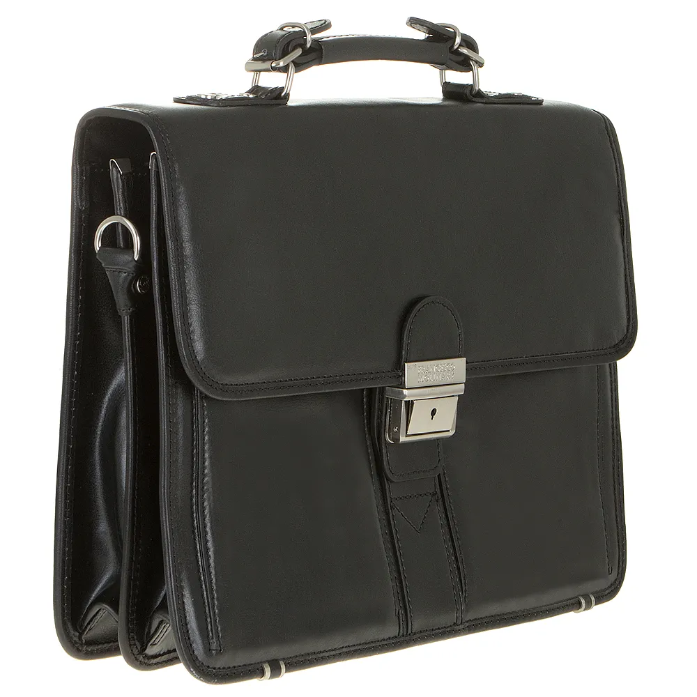 Мужской классический портфель Francesco Molinary из натуральной глянцевой кожи коричневого цвета. Внутри портфеля два больших отделения, в отделяющей их перегородке карман на молнии. Также имеются карманы для визиток, ручки и телефона. Застежка на откидной клапан с замком на ключе. Под клапаном три кармана, один большой, два боковых закрываются на кнопку. На задней стенке портфеля внешний и внутренний карманы на молнии. В комплекте плечевой ремень из натуральной кожи.