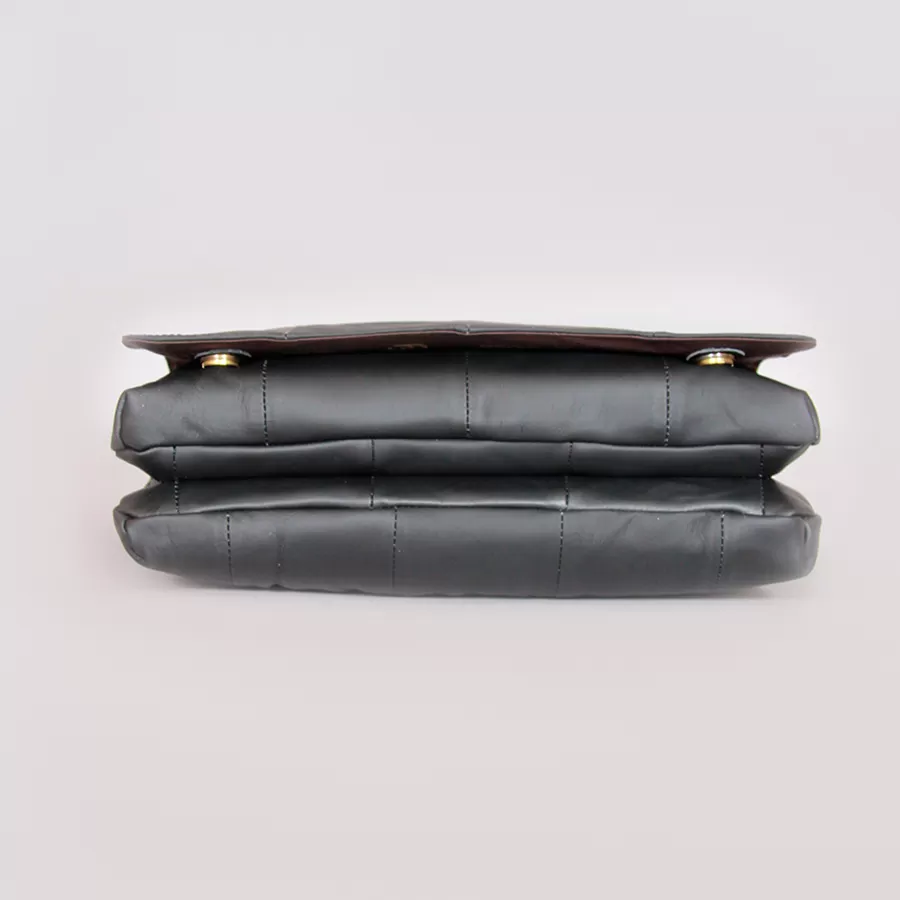- Клапан на двух магнитах и декорирован квадратными вставками, под ним карман на магните и карман на молнии, а также два независимых отделения на молниях, внутри которых средник на молнии и три дополнительных кармана.