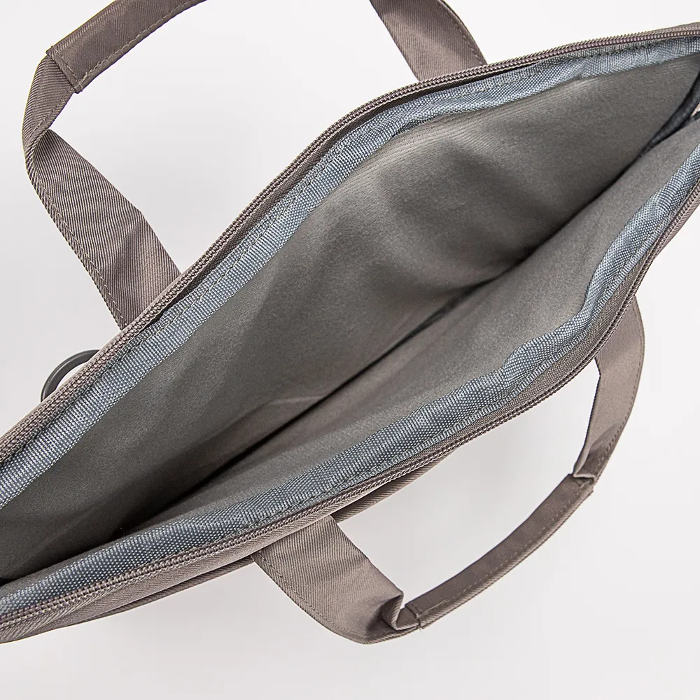 Сумка от торговой марки Ecotope из практичного текстильного материала. Плоская модель для ноутбука диагональю 14 дюймов, с двумя ручками, съемным регулируемым плечевым ремнем. Стенки сумки уплотнены. Отделение на молнии, с текстильной подкладкой. На лицевой стороне – карман на скрытой молнии. На задней стороне имеется лямка для крепления на выдвижную ручку чемодана.