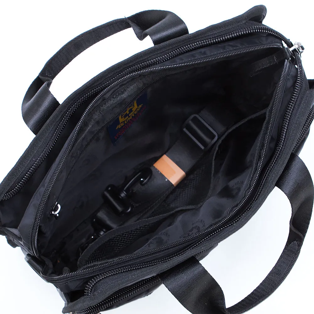 Сумка от торговой марки Volunteer из практичного текстильного материала черного цвета. Модель с двумя ручками и съемным регулируемым плечевым ремнем. Закрывается молнией. Внутри: отделения с текстильной подкладкой. Среднее отделение на молнии, с карманом на молнии и двумя сетчатыми карманами. На лицевой стороне – 4 кармана на молнии. На задней стороне – карман на молнии.