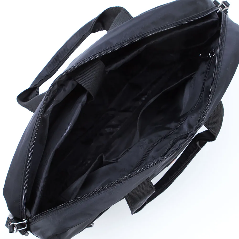 Сумка от торговой марки Volunteer из практичного текстильного материала черного цвета. Модель с двумя ручками и съемным регулируемым плечевым ремнем. Отделение на молнии. Внутри: текстильная подкладка, накладной карман с уплотненной стенкой для ноутбука, органайзер, карман на молнии. На лицевой стороне – два кармана на молнии, кольцо для крепления. На задней стороне – карман на молнии, лямка для крепления на выдвижную ручку чемодана. В нижней части имеется раздвижка на молнии для увеличения объема.