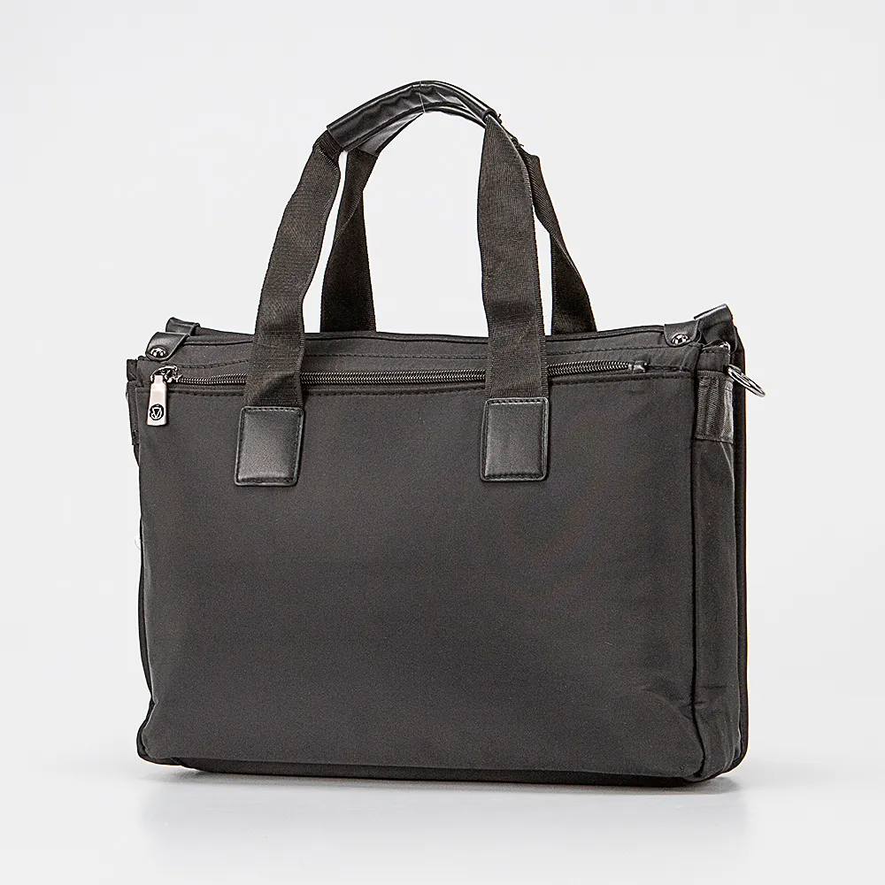 Мужская сумка Valigetti из практичного текстильного материала и искусственной кожи черного цвета. Модель с двумя удлиненными ручками и съемным регулируемым плечевым ремнем с наплечником. Три отделения на молнии, с текстильной подкладкой. В основном отделении: вместительный накладной карман, два накладных карман, карман на молнии.