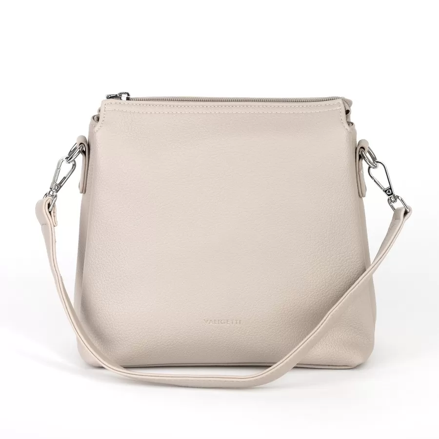 Сумка от торговой марки Valigetti выполнена из натуральной кожи. Модель с двумя отстегивающимся ремнями разной длины на карабинах. 3 отделения под общей молнией, внутри которых карман на молнии и кармашек для мелких вещей. На задней стороне – карман на молнии