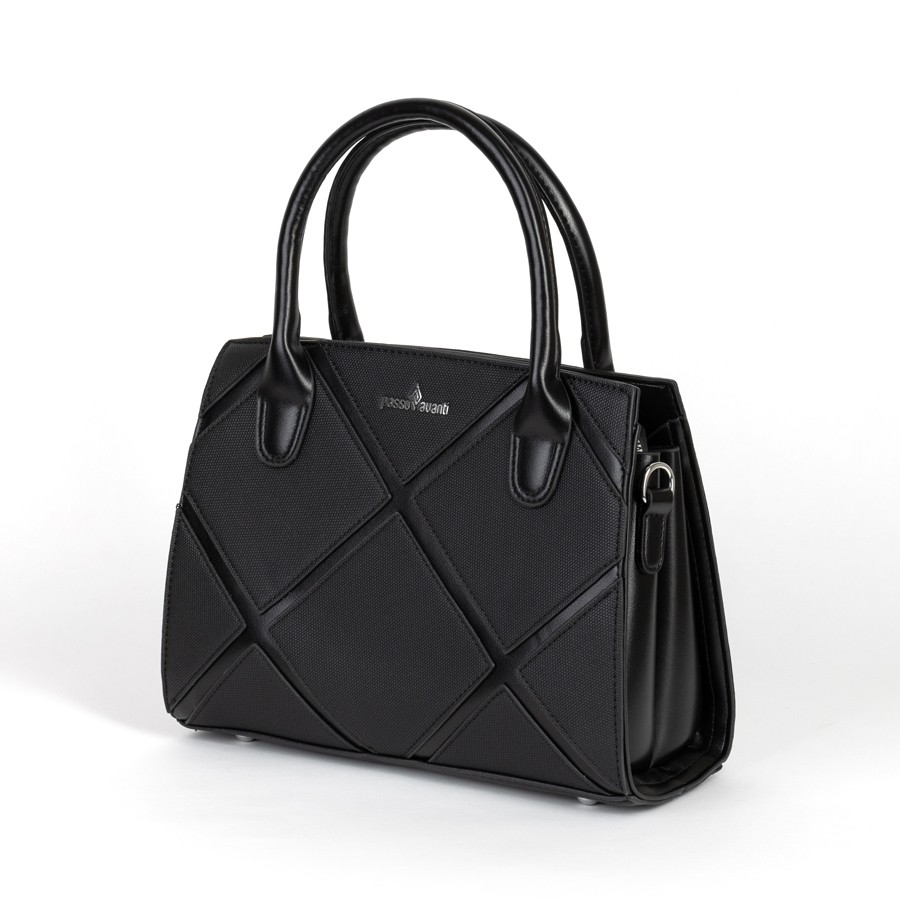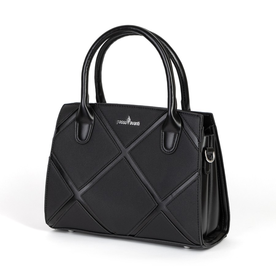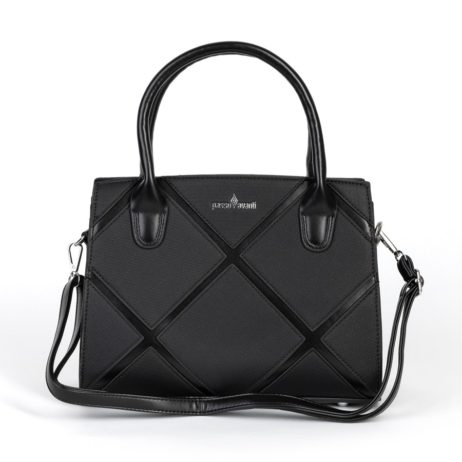 Стильная женская сумка Passo Avanti из искусственной кожи. Держит форму. Имеет 2 отделения под внешней молнией. Внутри также есть карман на молнии. Твердые ручки вшиты в сумку. На внешней стороне есть карман на молнии. Также в комплект входит съёмный плечевой ремень