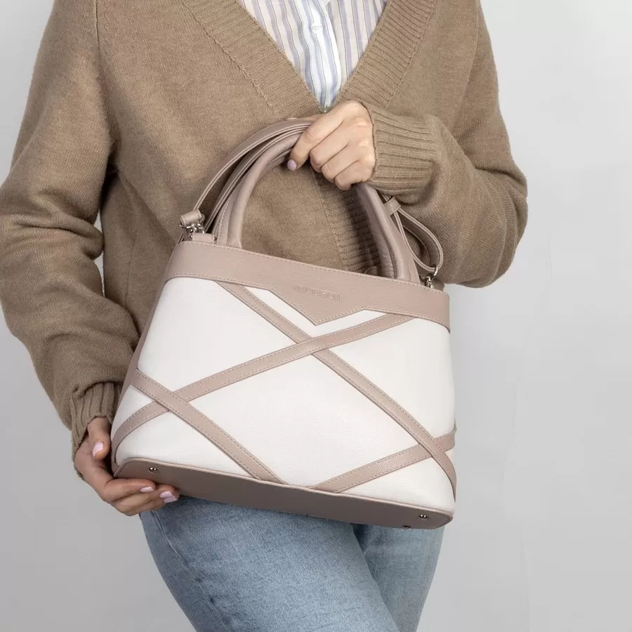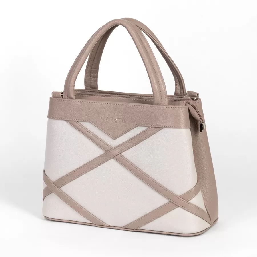 Cтильная женская сумка бренда Valigetti из экокожи с зернистой структурой. Прошит фирменной подкладочной тканью. Имеет пришитые кожаные ручки и плечевой ремень. Внутри 2 отделения под молнией: в одном средник на молнии и 2 подотделения, в другом 1 карман на молнии. На задней стороне есть карман на молнии
