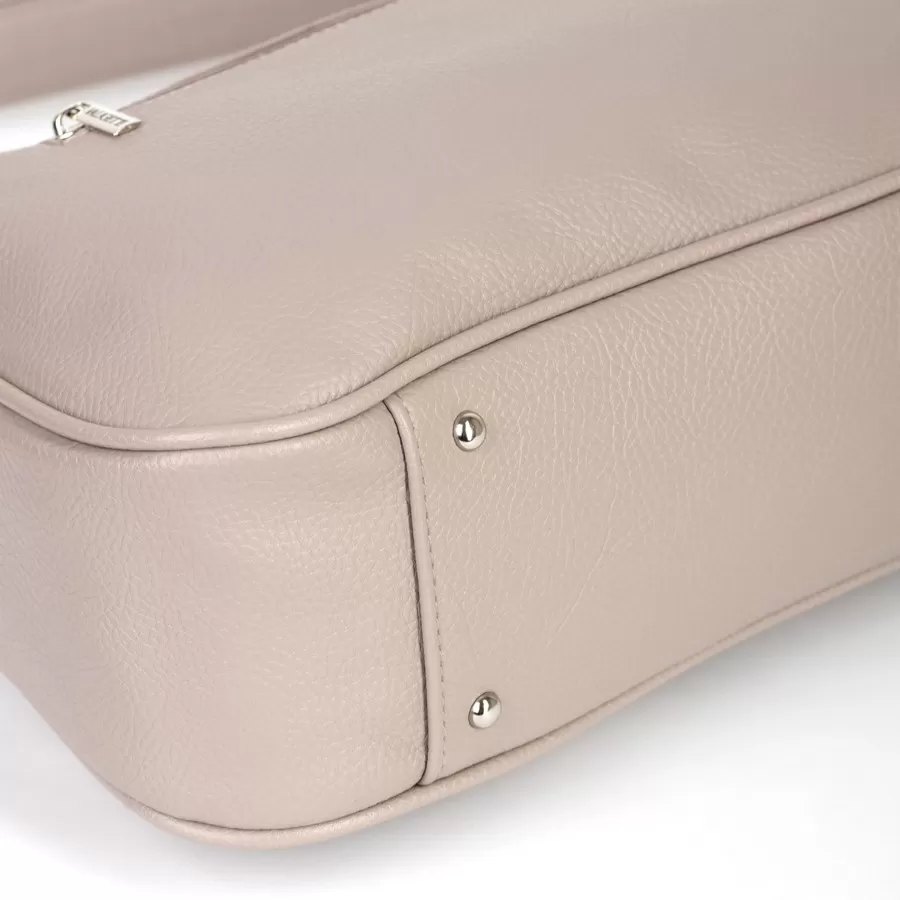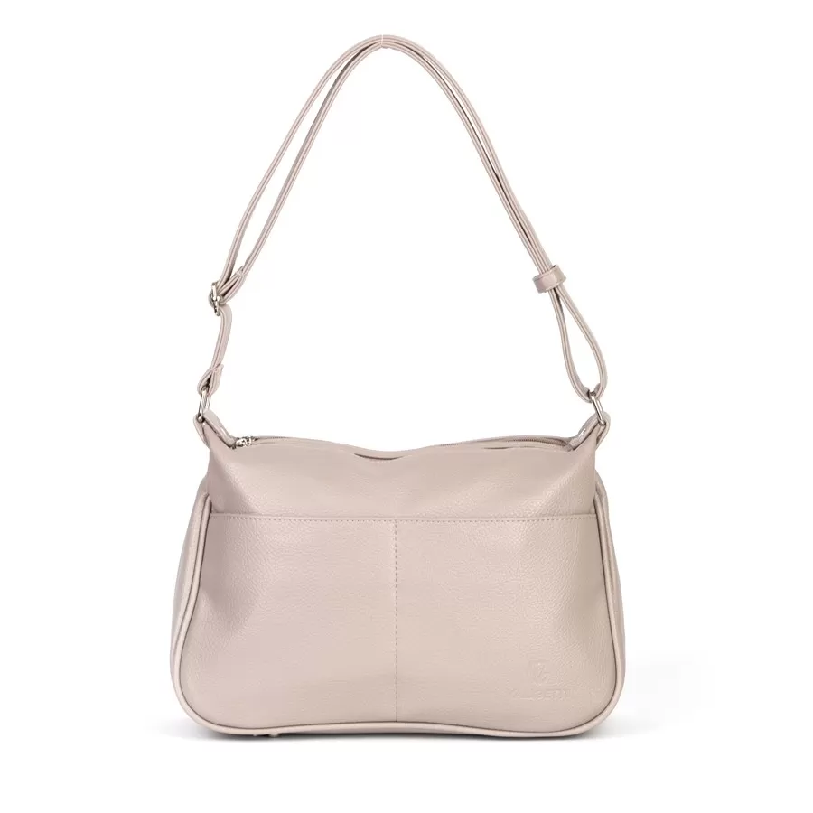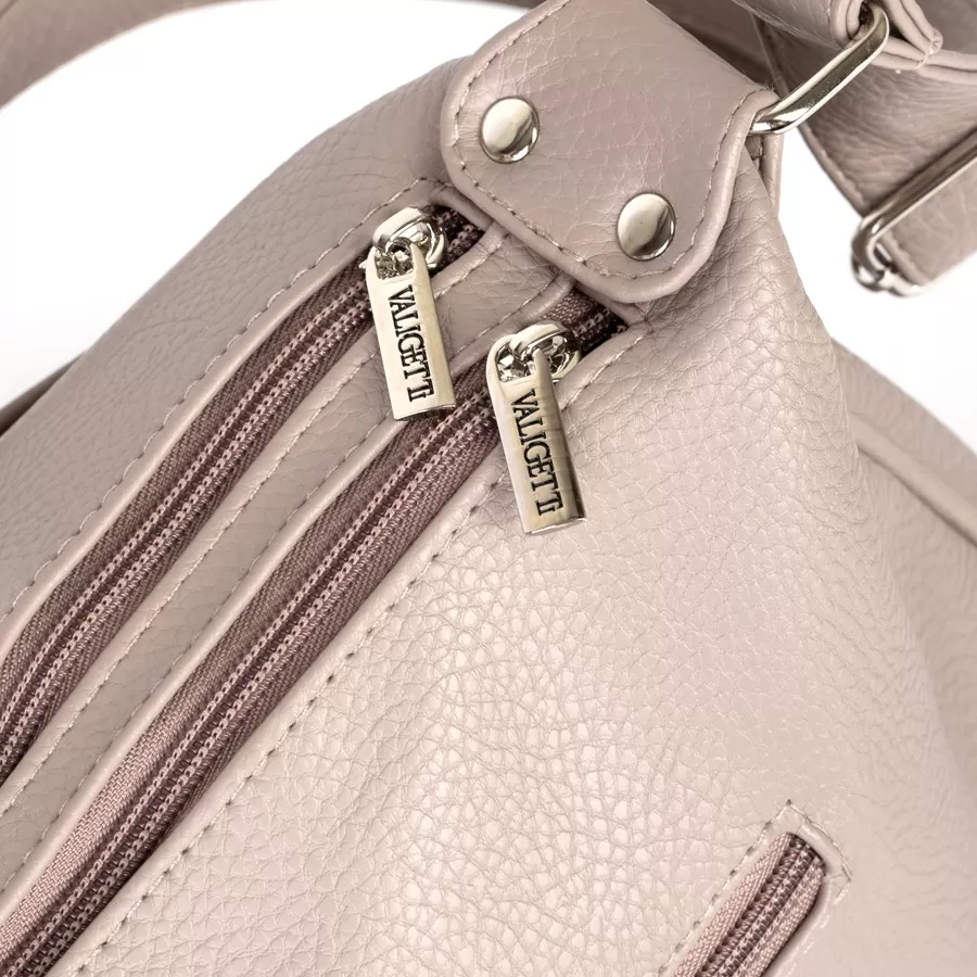 Сумка от торговой марки Valigetti из искусственной кожи. Модель с одной ручкой. Два отделения на молнии. Внутри: фирменная подкладка, перегородка и карман на молнии. На задней стороне – карман на молнии. Дно оснащено металлическими ножками для защиты от износа.