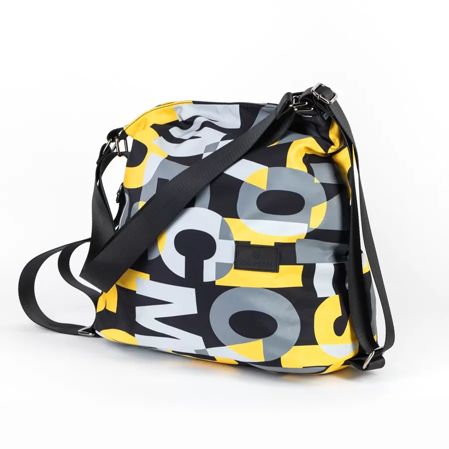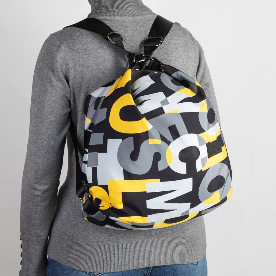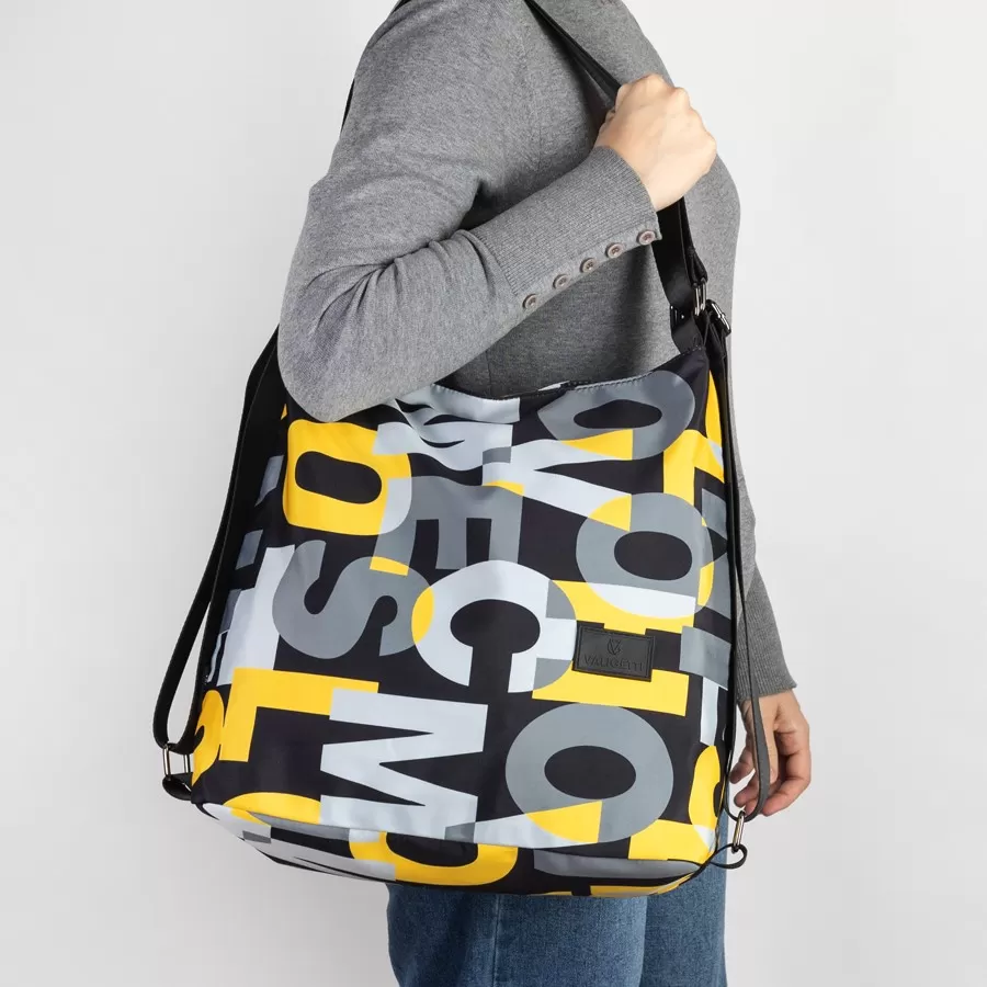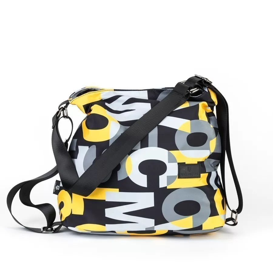 Стильная женская сумка-рюкзак бренда Valigetti из текстиля с ярким дизайном. Имеет регулируемый текстильный плечевой ремешок, перестегивающийся в лямки для ношения на спине. Внутри основного отделения под молнией карман на молнии и 2 кармашка для мелких вещей. На задней стороне имеется карман на молнии