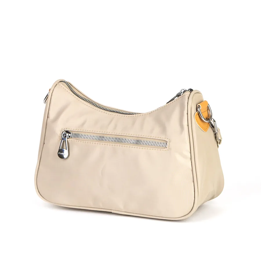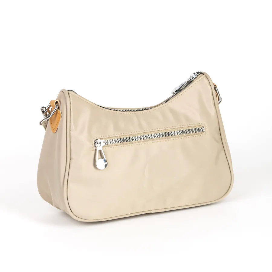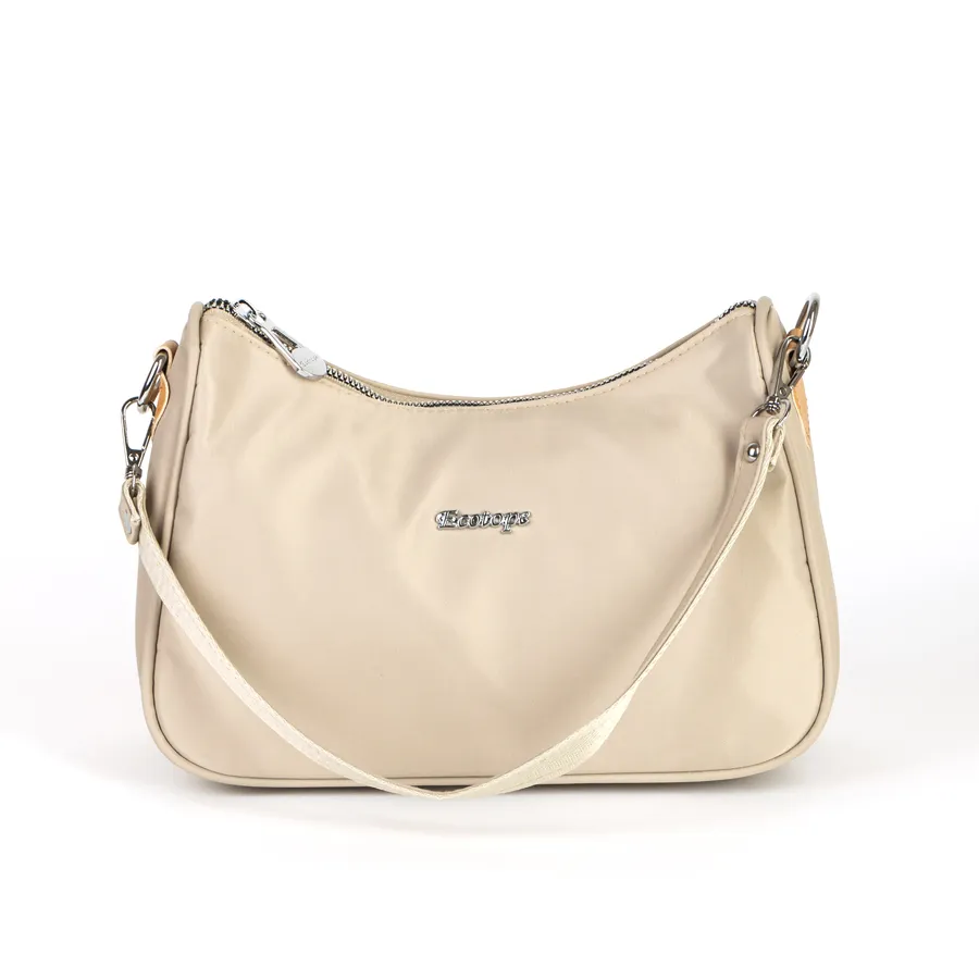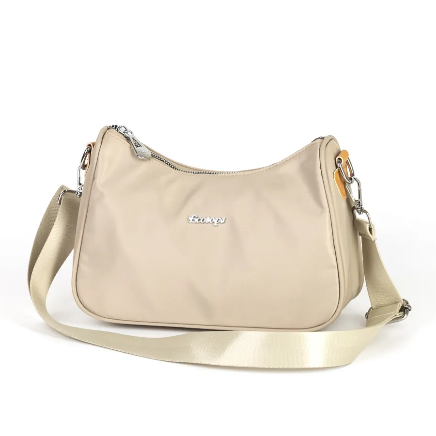 Женская сумка бренда Ecotope из искусственной гладкой кожи. Прошита фирменной подкладочной тканью. Внутри одно отделение под молнией, карман на молнии и кармашек для мелких вещей. На задней стороне есть карман на молнии. В комплект входит прицепной плечевой ремень из текстиля