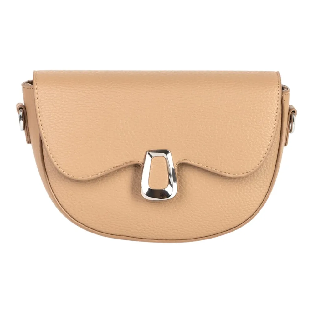 Сумка от торговой марки Passo Avanti из искусственной кожи бежевого цвета. Есть специальный карабин, к которому можно пристегнуть плечевой ремешок. Открывается на замок-клапан и внутри имеет 1 большое отделение с еще одним тайным кармашком, который застегивается на молнию.