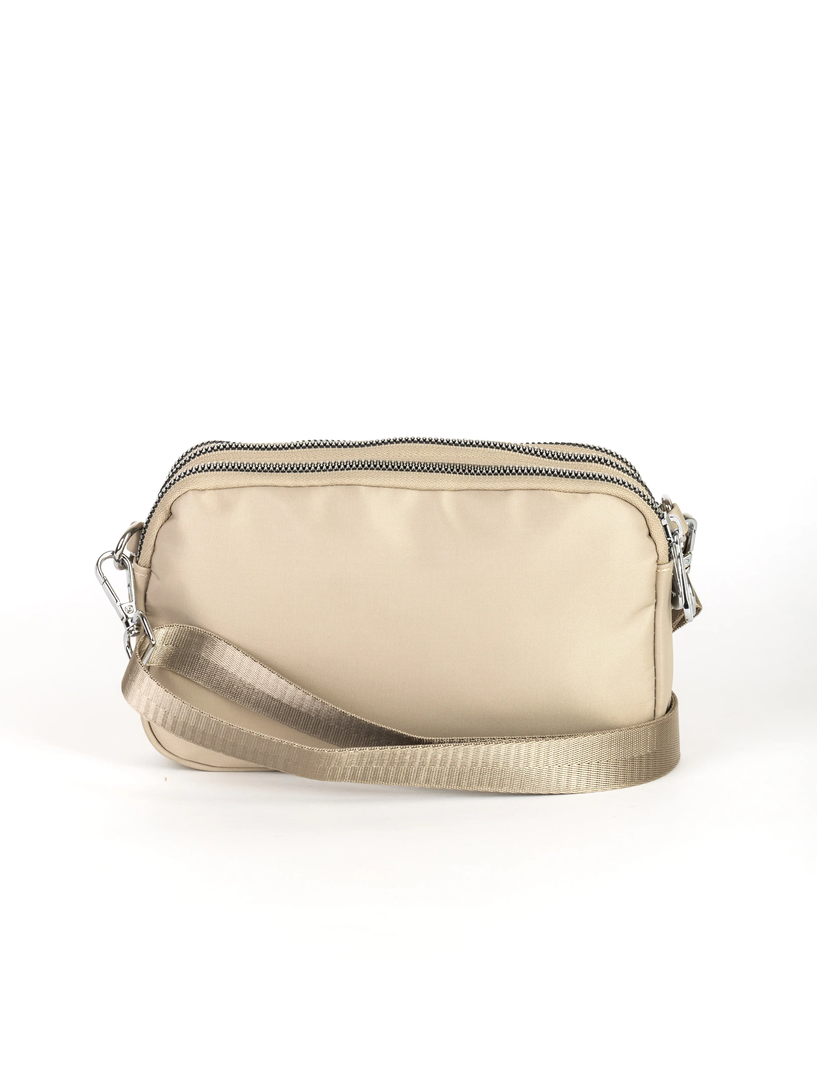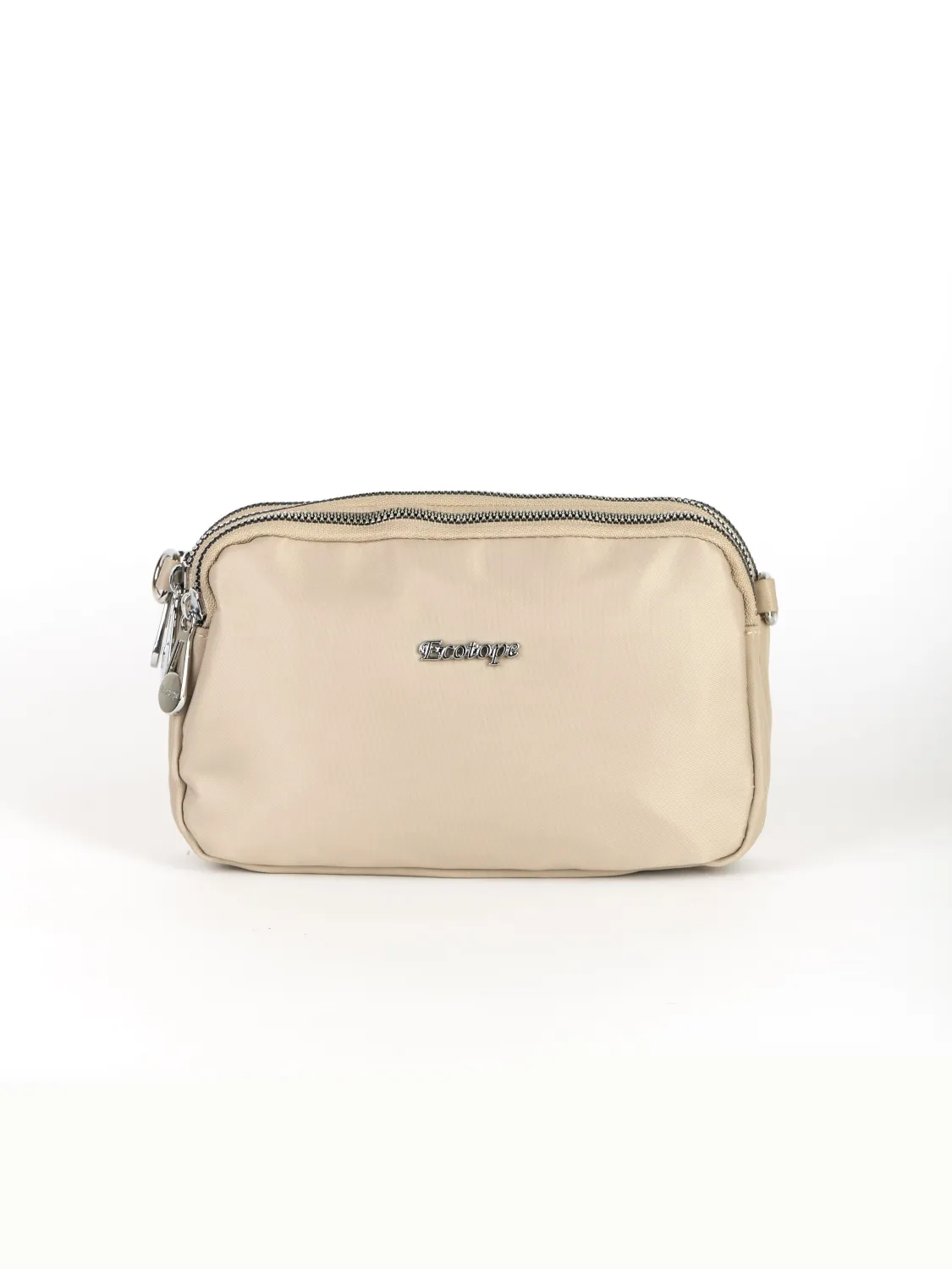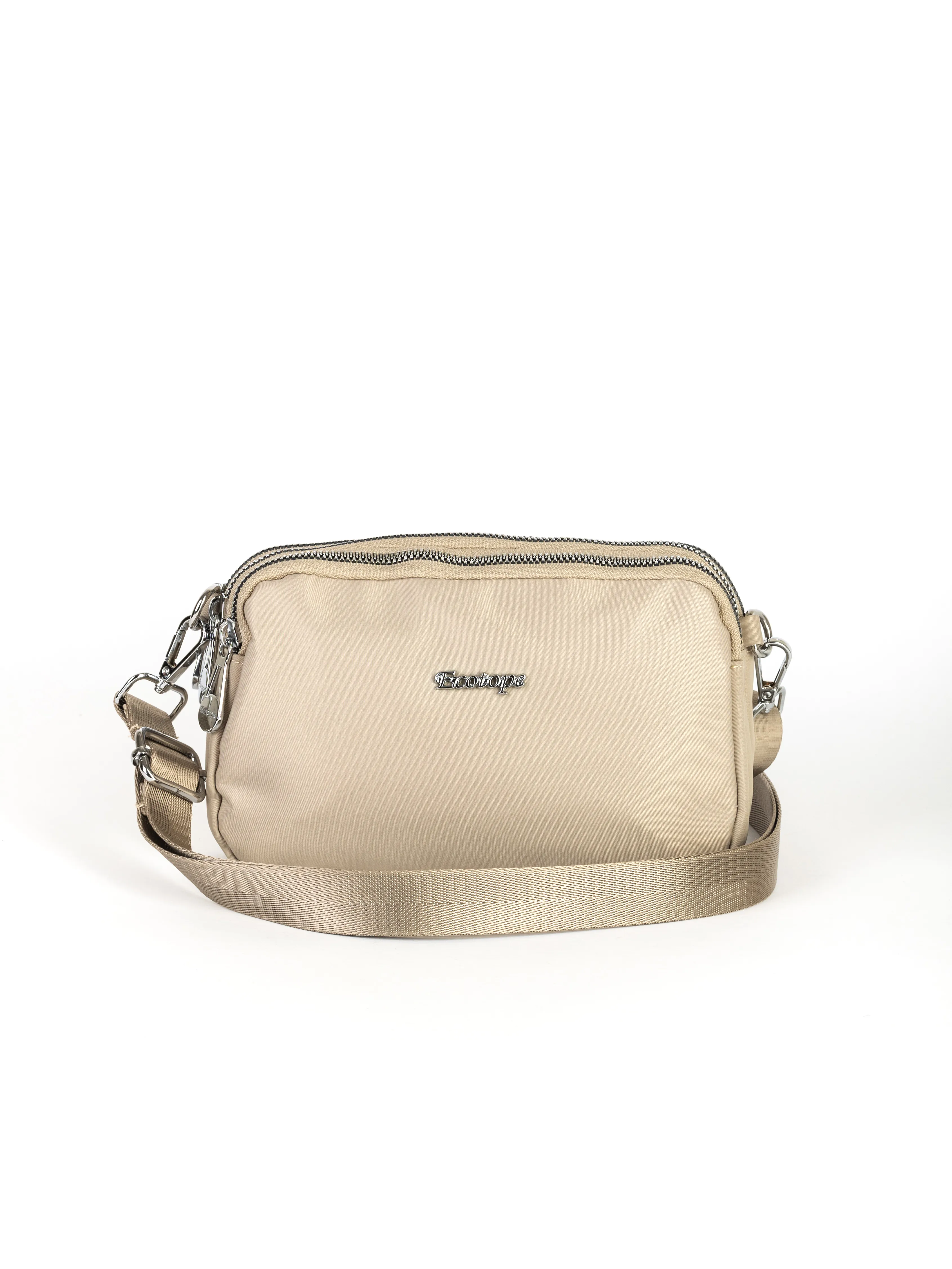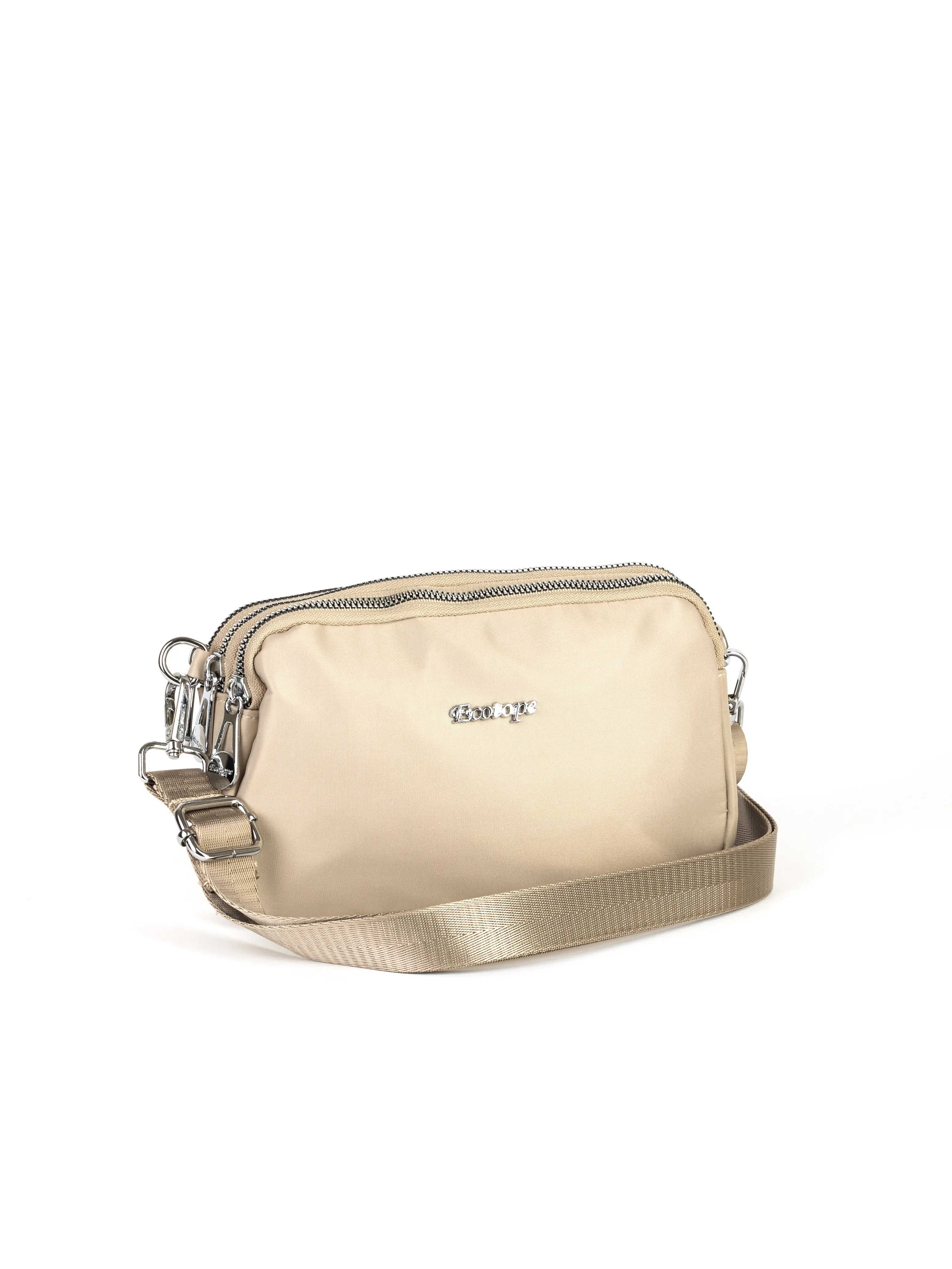 Сумка-планшет от бренда Ecotope из практичного текстильного материала бежевого цвета. Модель со съемным регулируемым плечевым ремнем. Три отделения на молнии, с текстильной подкладкой. Внутри карман на молнии и накладной карман. На задней стороне — карман на молнии.