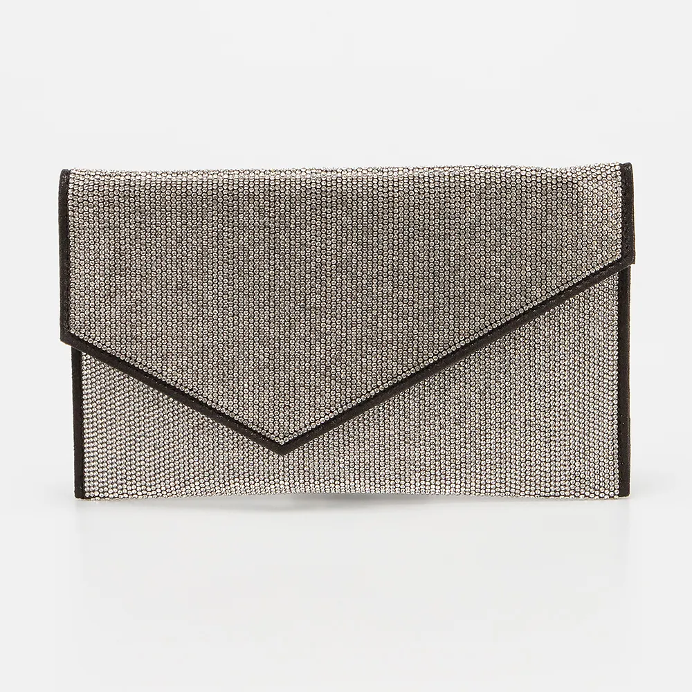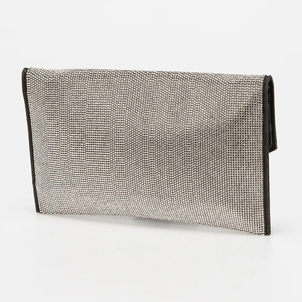 Клатч от торговой марки Passo Avanti. Модель серебристого цвета, декорирована стразами. Закрывается клапаном на магнитной кнопке, имеется съемная цепочка. Внутри: текстильная подкладка, накладной карман.